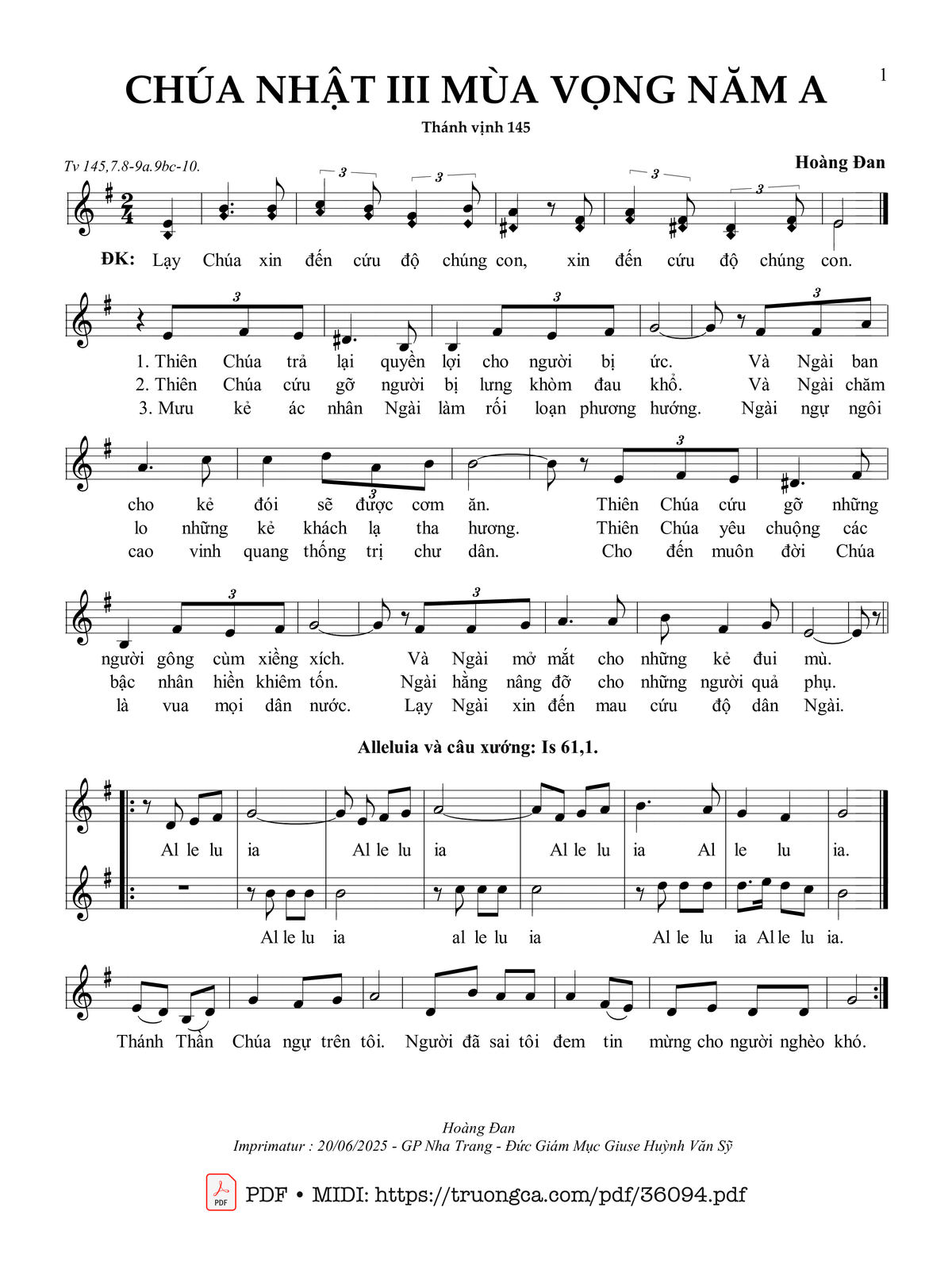 Các sheet PDF tương tự Chúa Nhật 3 Mùa Vọng Năm A (Tv 145):