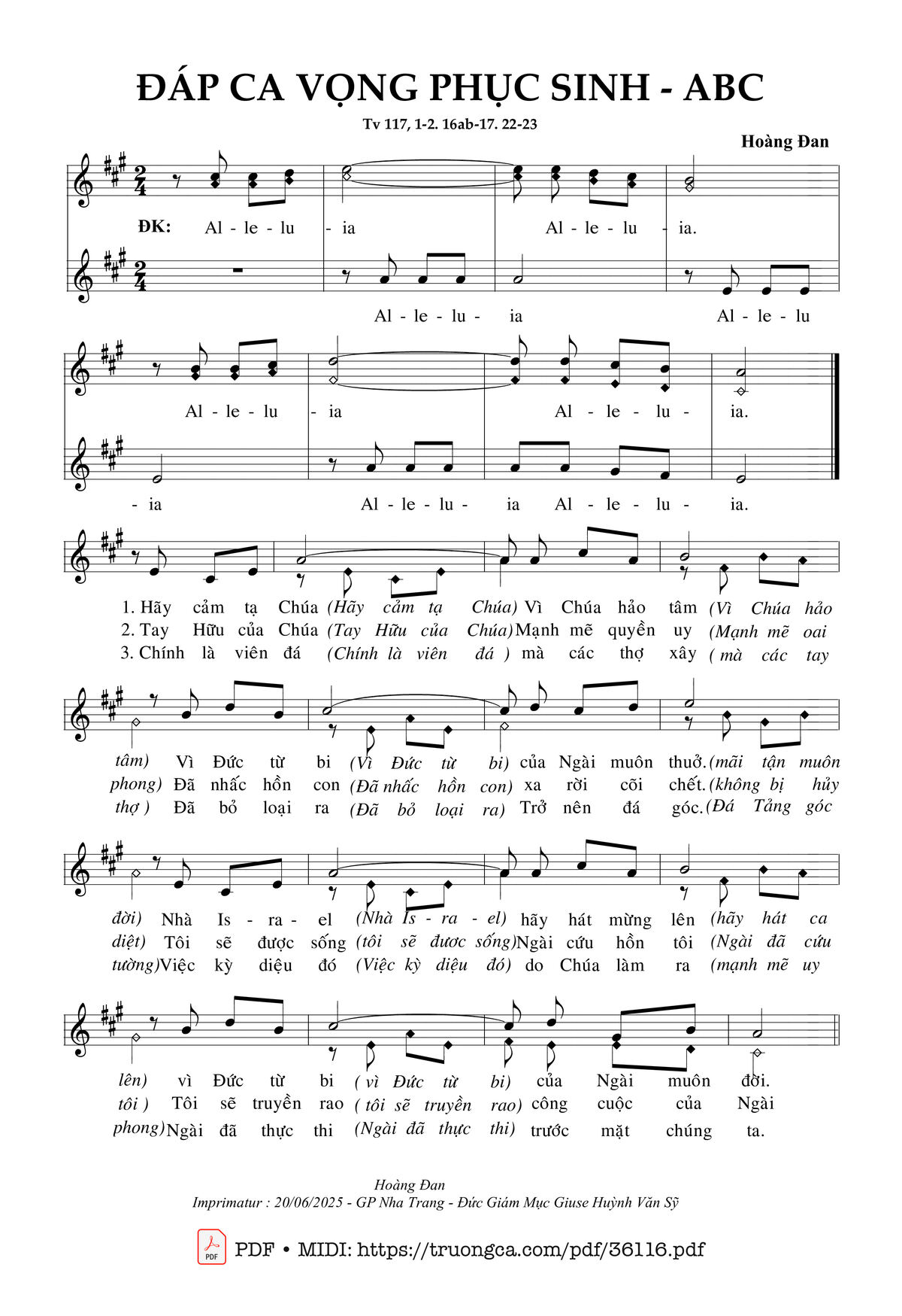 Các sheet PDF tương tự Đáp Ca Vọng Phục Sinh Abc (Tv 117):