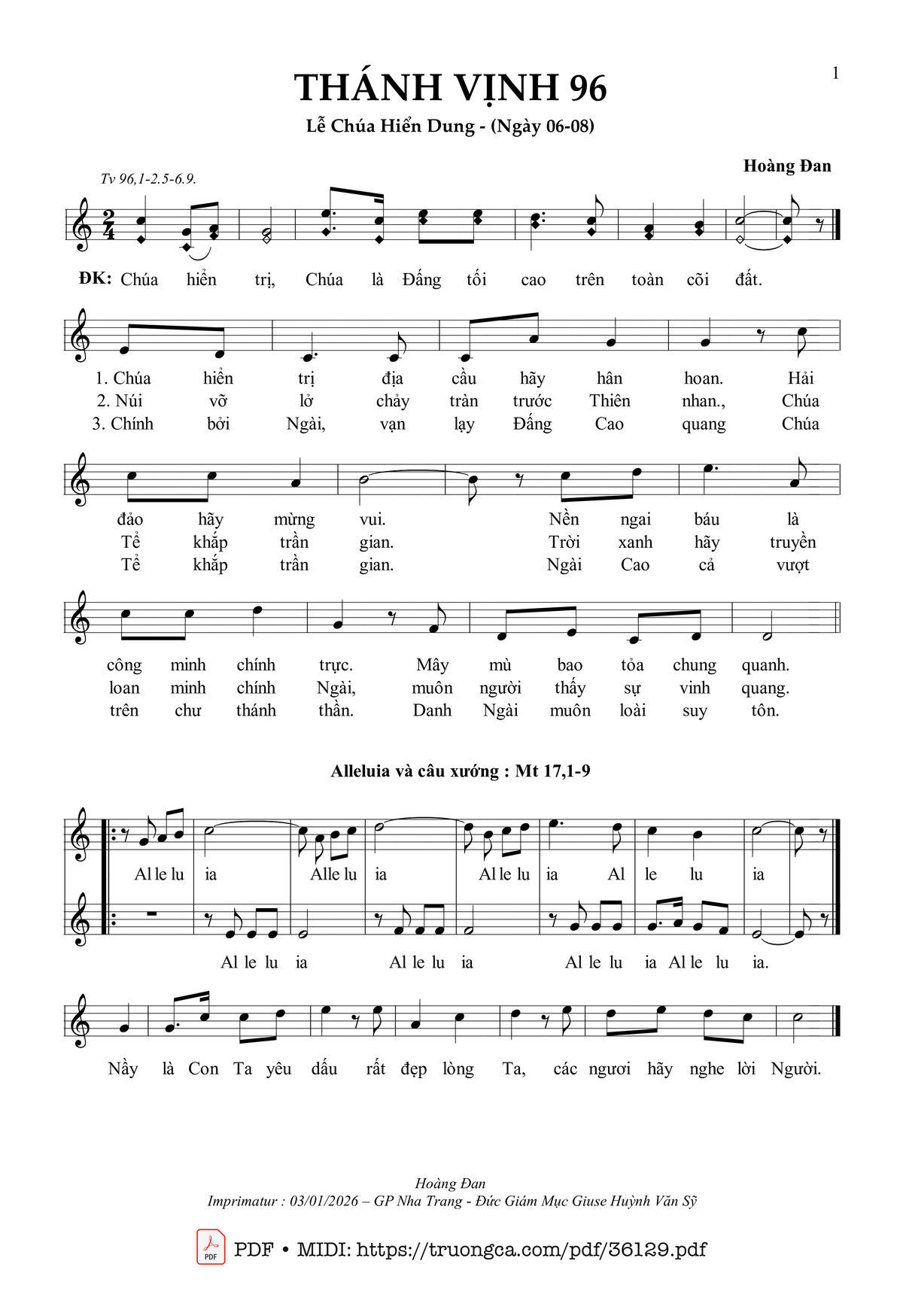 Các sheet PDF cùng tên Thánh Vịnh 96 (Lễ Chúa Hiển Dung, Ngày 06/08):
