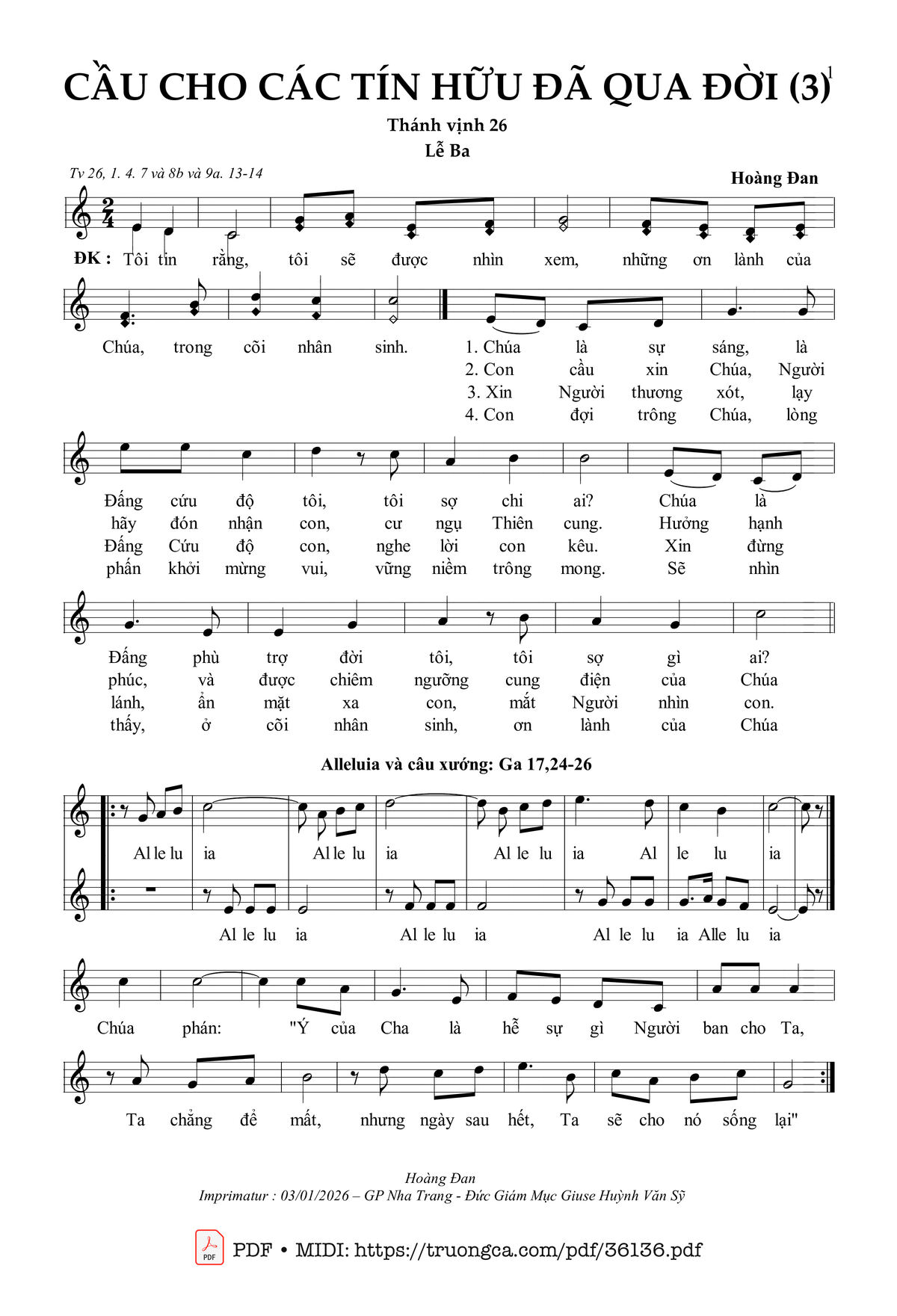 Các sheet PDF tương tự Cầu Cho Các Tín Hữu Đã Qua Đời - Lễ Ba (Tv 26):