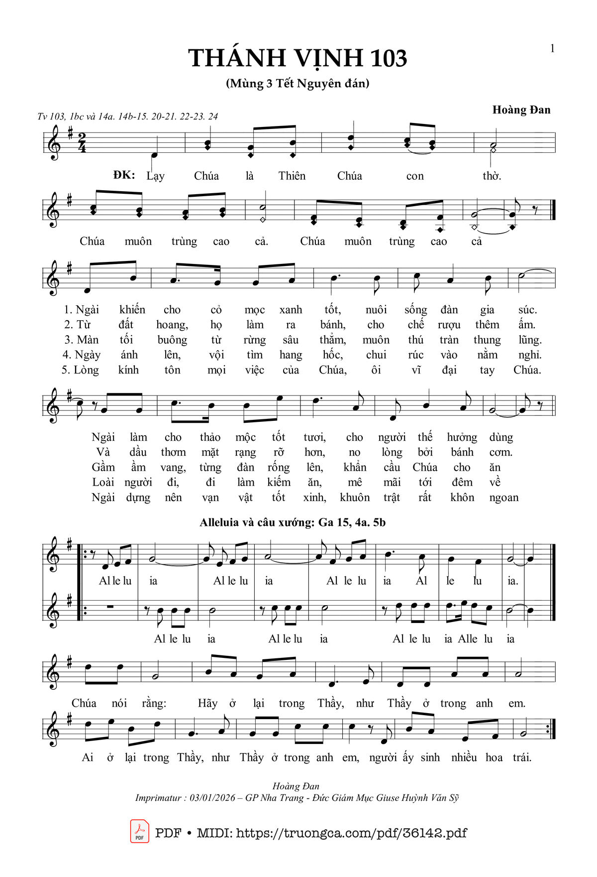 Các sheet PDF cùng tên Thánh Vịnh 103 (Lễ Mùng 3 Tết Nguyên Đán):