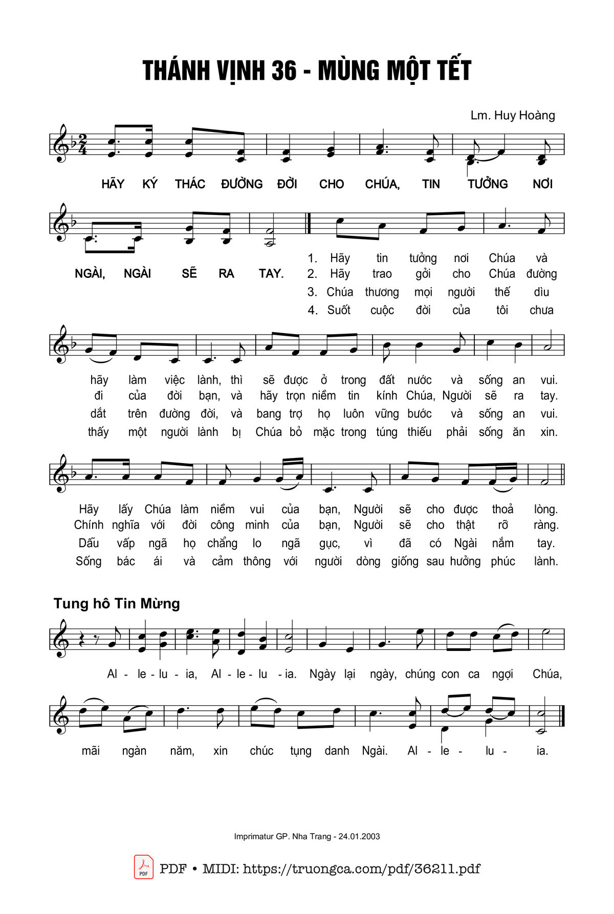 Các sheet PDF tương tự Thánh Vịnh 36, Mùng Một Tết: