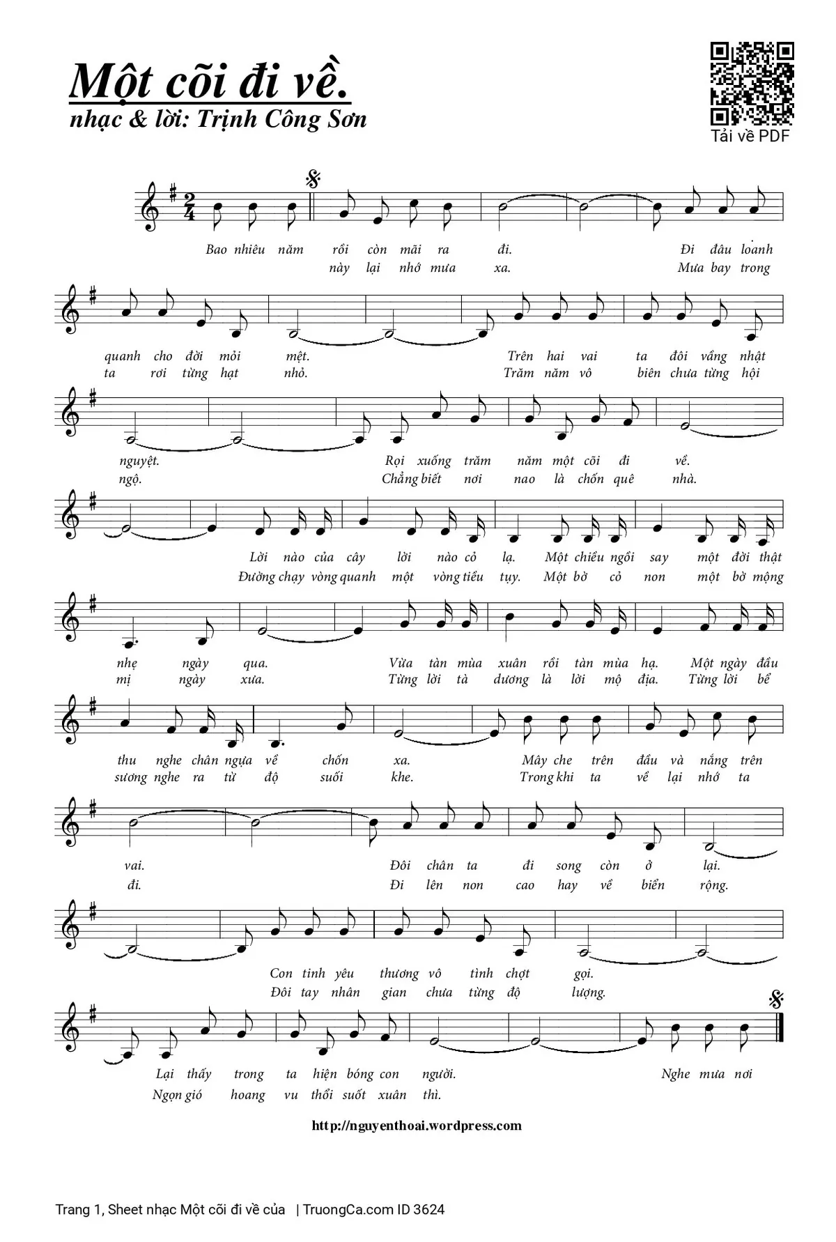 Phần nghe hát Một cõi đi về (Trịnh Công Sơn) được nhúng từ Youtube, Musescore hoặc link ngoài và chịu sự kiểm soát bản quyền của bên thứ ba đó, vì vậy có thể bị xóa hoặc chèn quảng cáo bất kỳ lúc nào. Nếu bạn không nghe - xem được ca sĩ hát tức là đã bị Youtube hoặc Musescore kiểm soát.