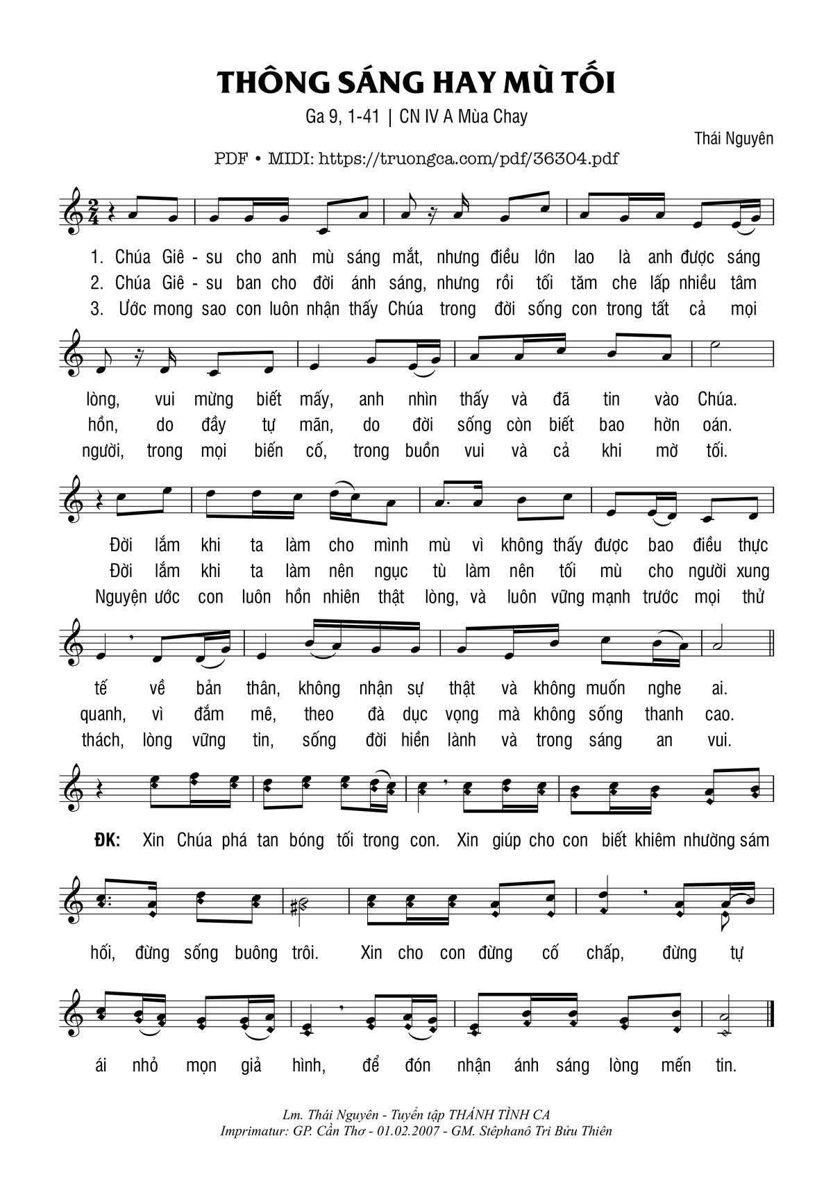 Thái Nguyên Chúa Giêsu cho anh mù sáng mắt nhưng điều lớn lao là anh được sáng lòng [PDF] [Sheet] [Lời H.A] [Mp4/Midi]