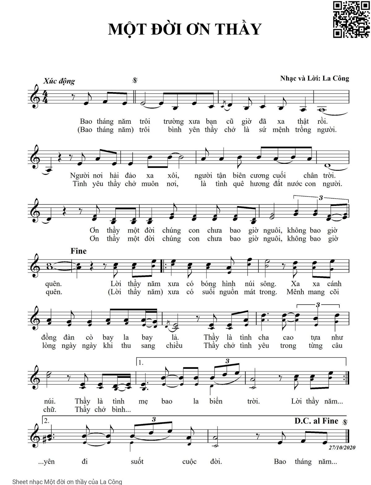 La Công Bao tháng năm trôi Trường xưa bạn cũ giờ đã xa thật rồi [PDF] [Sheet] [Lời H.A] [Mp4/Midi]
