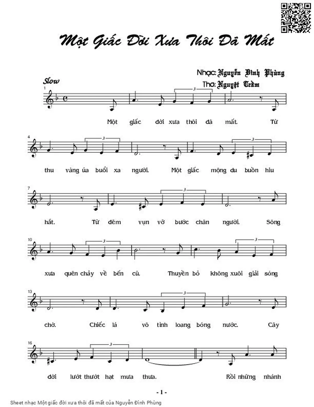 Nguyễn Đình Phùng Một giấc đời xưa thôi đã mất Tự thú vàng úa buổi xa người [PDF] [Sheet] [Lời H.A] [Mp4/Midi]