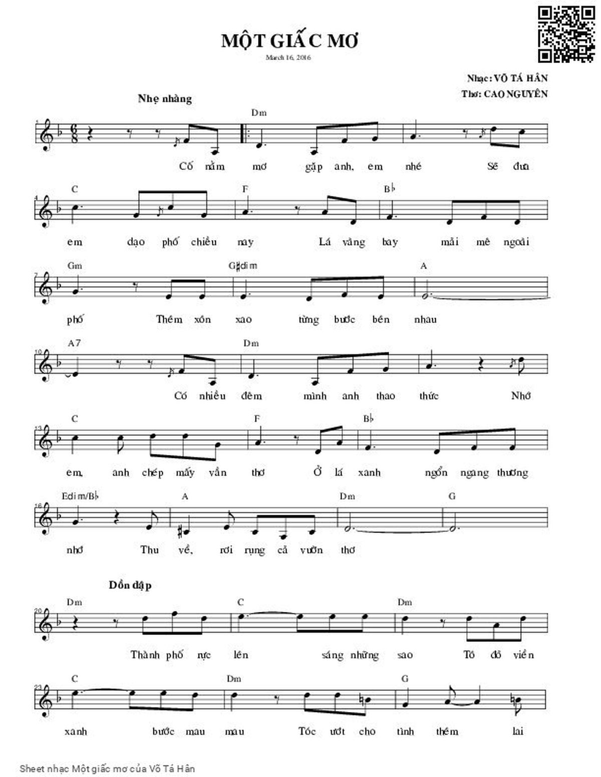 Võ Tá Hân Cố nằm mơ gặp anh em nhé Sẽ đưa em dạo phố chiều nay [PDF] [Sheet] [Lời H.A] [Mp4/Midi]