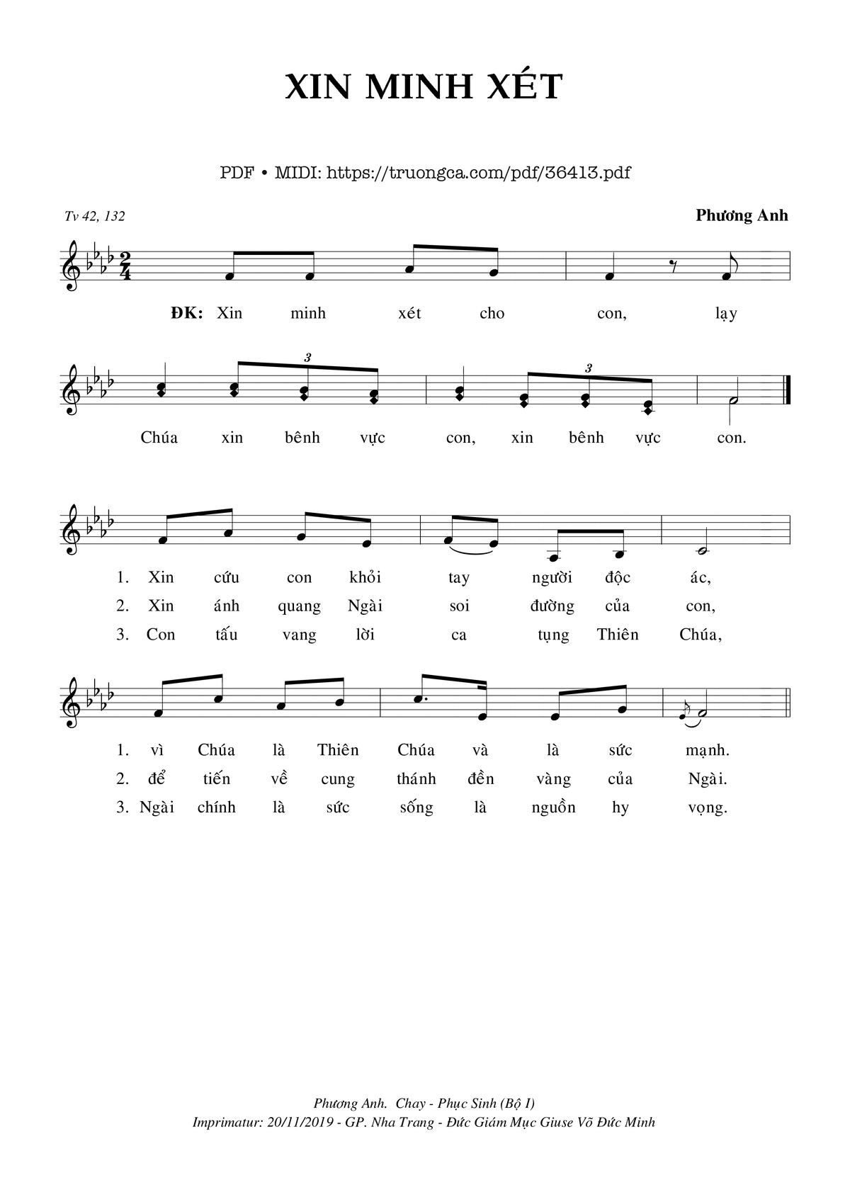 Phương Anh Xin minh xét cho con lạy Chúa xin bênh vực con [PDF] [Sheet] [Lời H.A] [Mp4/Midi]