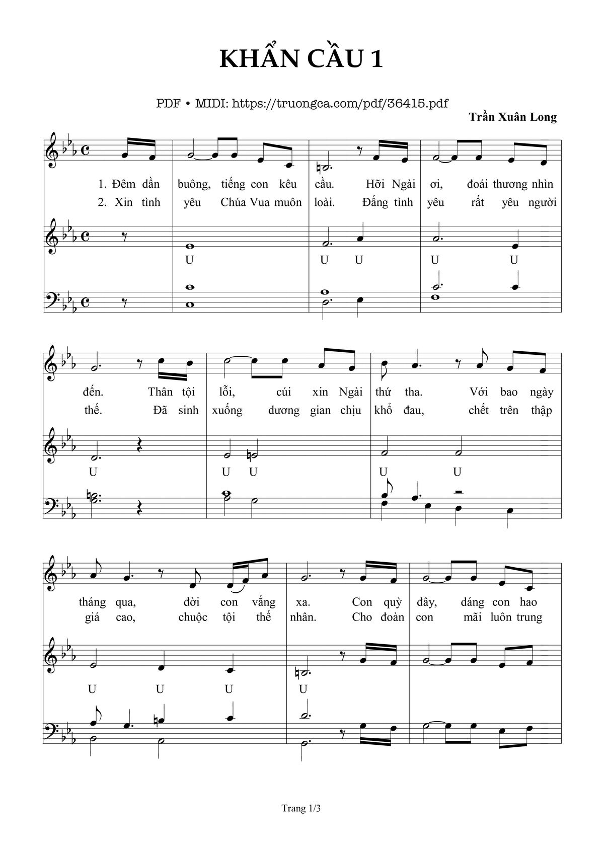 Phần nghe hát Khẩn Cầu 1 (Trần Xuân Long) được nhúng từ Youtube, Musescore hoặc link ngoài và chịu sự kiểm soát bản quyền của bên thứ ba đó, vì vậy có thể bị xóa hoặc chèn quảng cáo bất kỳ lúc nào. Nếu bạn không nghe - xem được ca sĩ hát tức là đã bị Youtube hoặc Musescore kiểm soát.