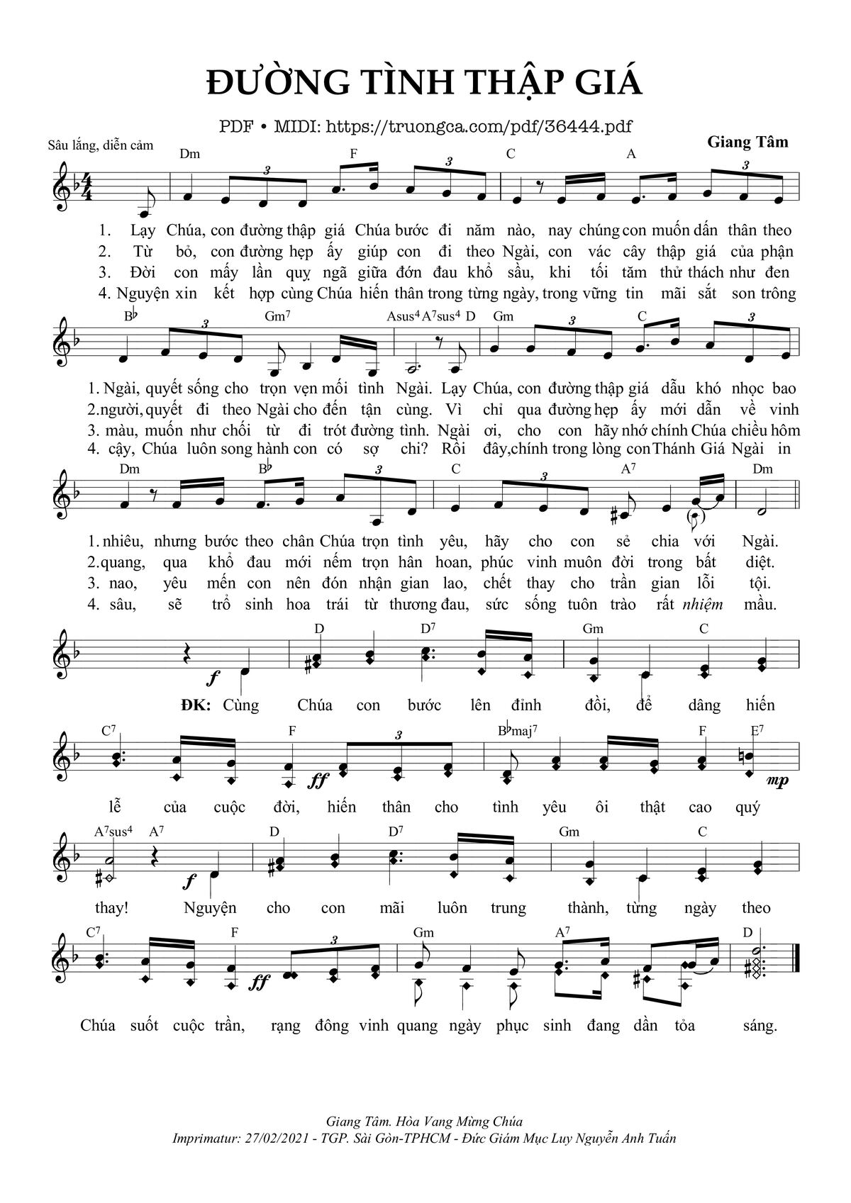 Giang Tâm Lạy Chúa con đường thập giá Chúa bước đi năm nào [PDF] [Sheet] [Lời H.A] [Mp4/Midi]