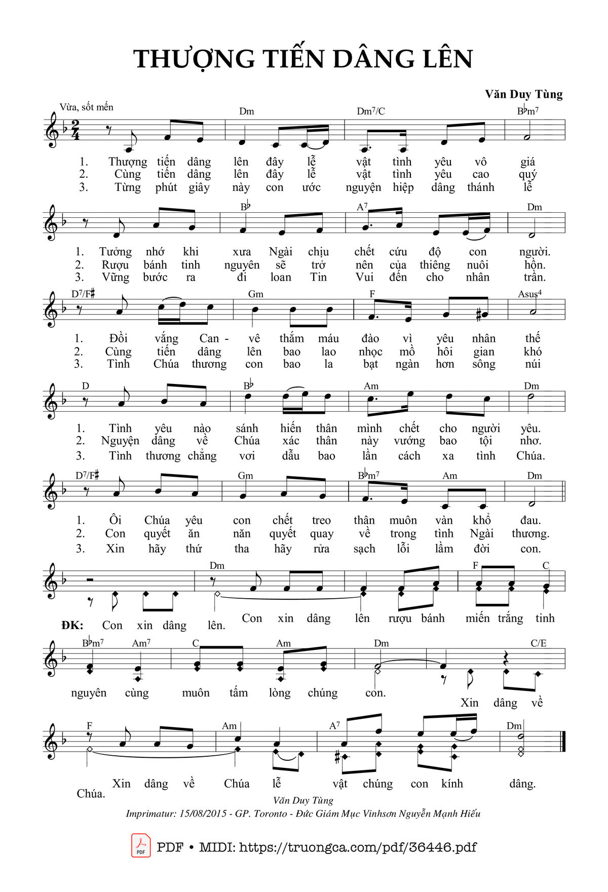 Dâng Lễ – Imprimatur. Gp. Toronto-Canada: 15.08.2015.