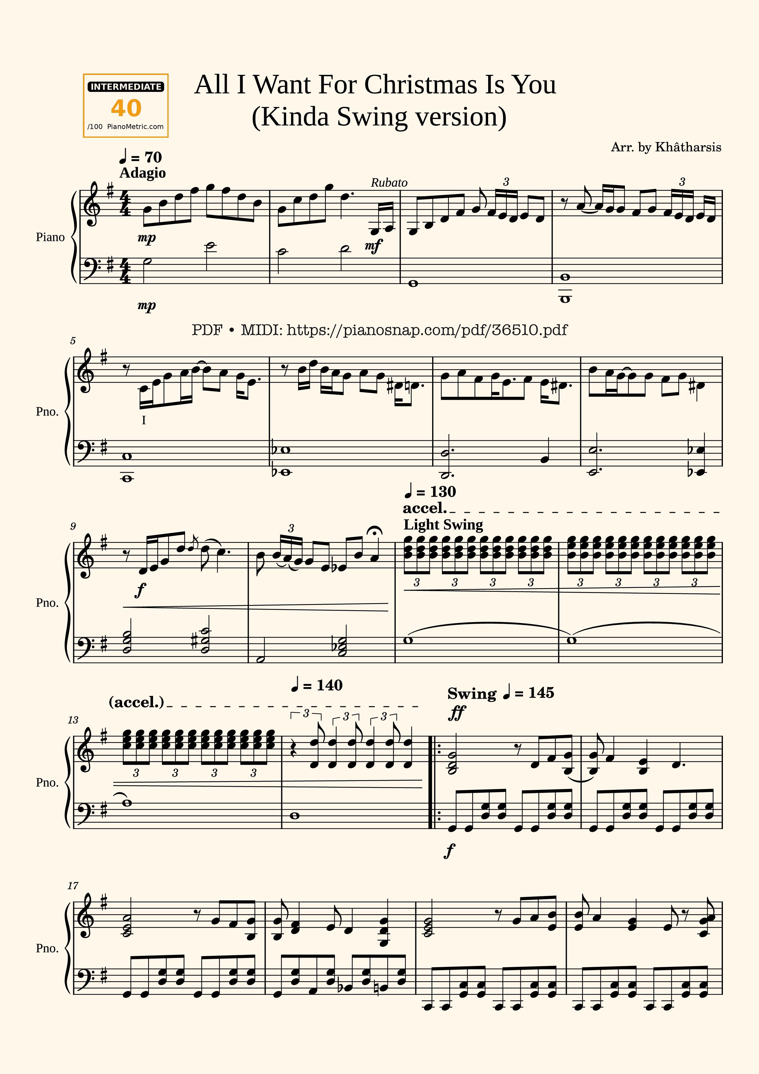 Download and print in PDF or MIDI free sheet music of All I Want For Christmas Is You - Mariah Carey for All I Want For Christmas Is You by Mariah Carey arranged by Khatharsis for Piano (Solo)