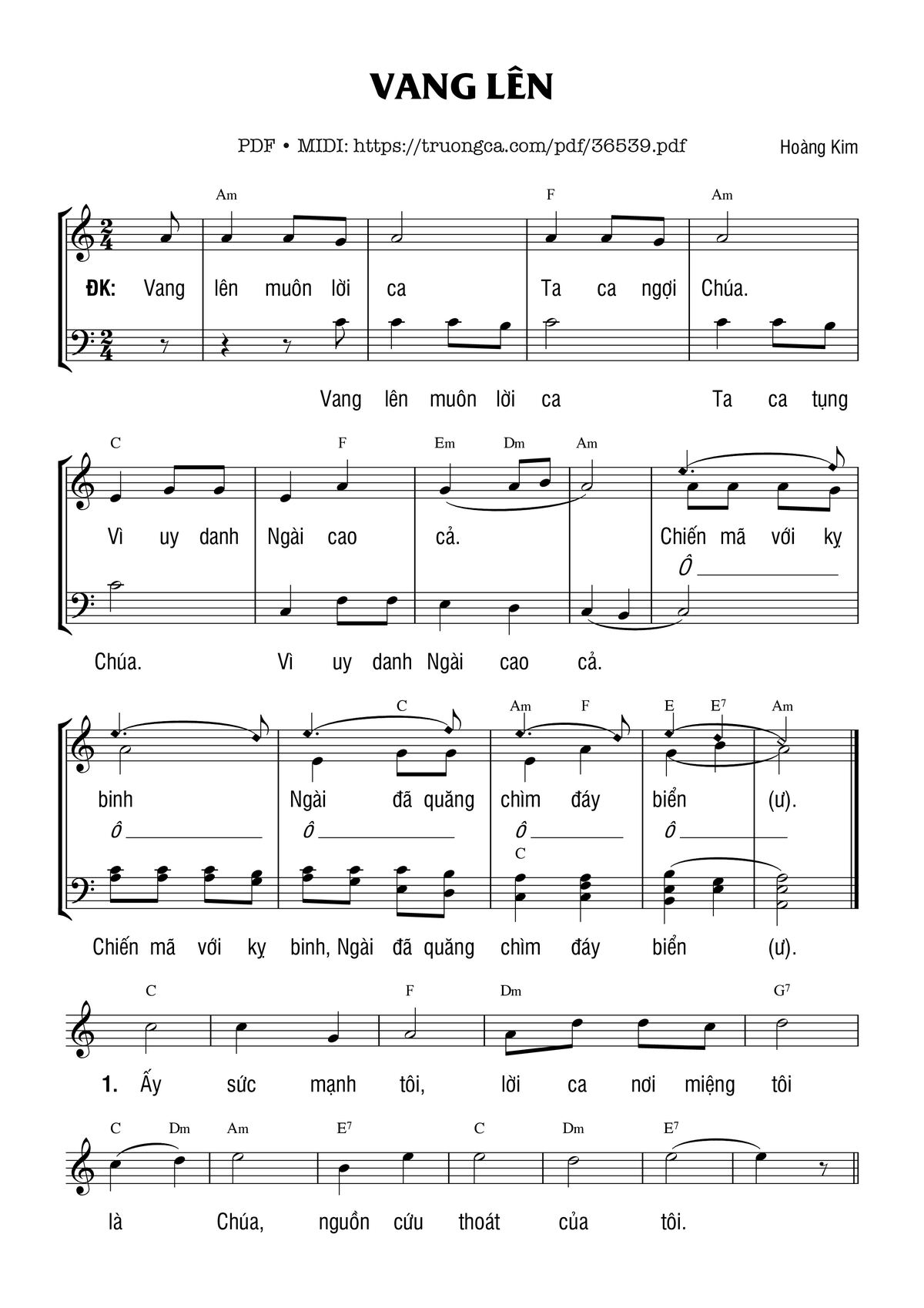 Hoàng Kim Vang lên muôn lời ca Ta ca ngợi Chúa Vì uy danh Ngài cao cả [PDF] [Sheet] [Lời H.A] [Mp4/Midi]