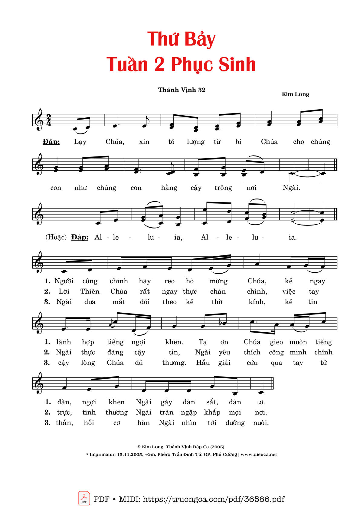 Thể loại 🌾 Nhạc Thánh Ca, 🌾 Thánh Vịnh - Đáp Ca, 🌾 Thánh Vịnh 32, 🌾 Thánh ca Imprimatur, Thứ Bảy, Tuần II Phục Sinh