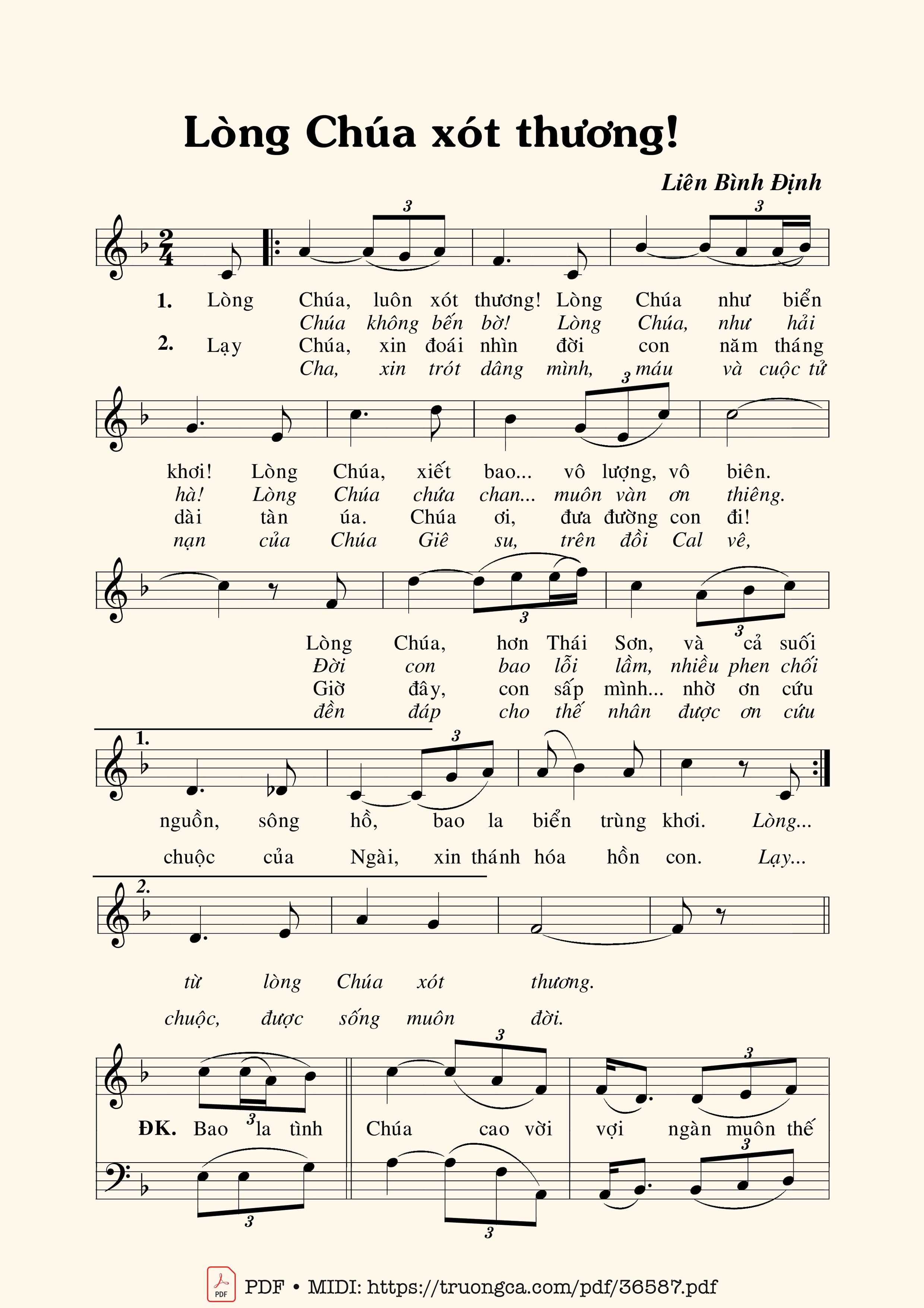 Liên Bình Định Lòng Chúa, luôn xót thương! Lòng Chúa như biến khơi. [PDF] [Sheet] [Lời H.A] [Mp4/Midi]