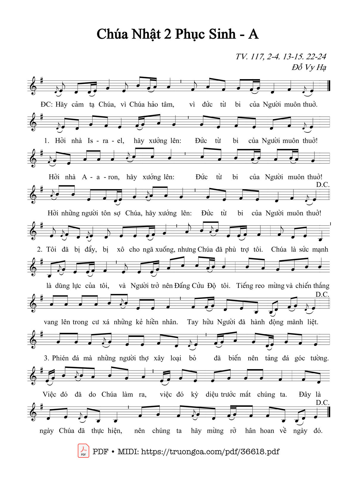 Các sheet PDF tương tự Thánh Vịnh 117, Chúa Nhật 2A Phục Sinh: