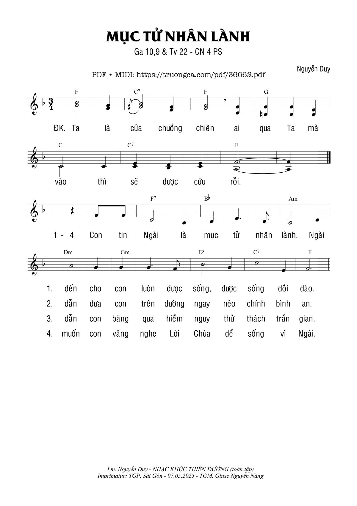 Hiệp Lễ Chúa Nhật 4 Phục Sinh – Imprimatur:TGP. Sài Gòn – 07.05.2025 – TGM. Giuse Nguyễn Năng – Nhạc Khúc Thiên Đường