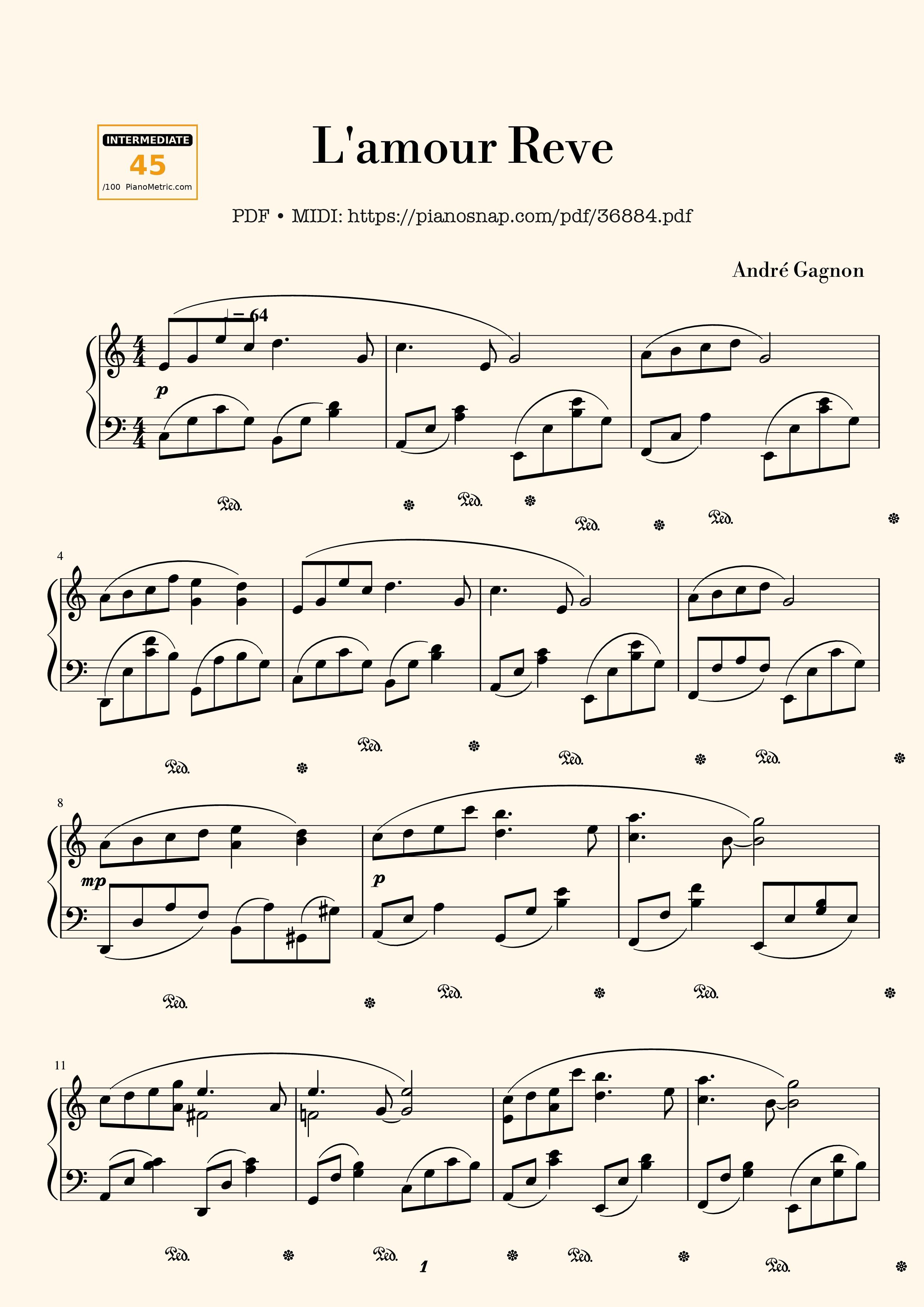 Download and print in PDF or MIDI free sheet music of L'amour Reve - André Gagnon for L'amour Reve by André Gagnon arranged by Unregistered_user for Piano (Solo)