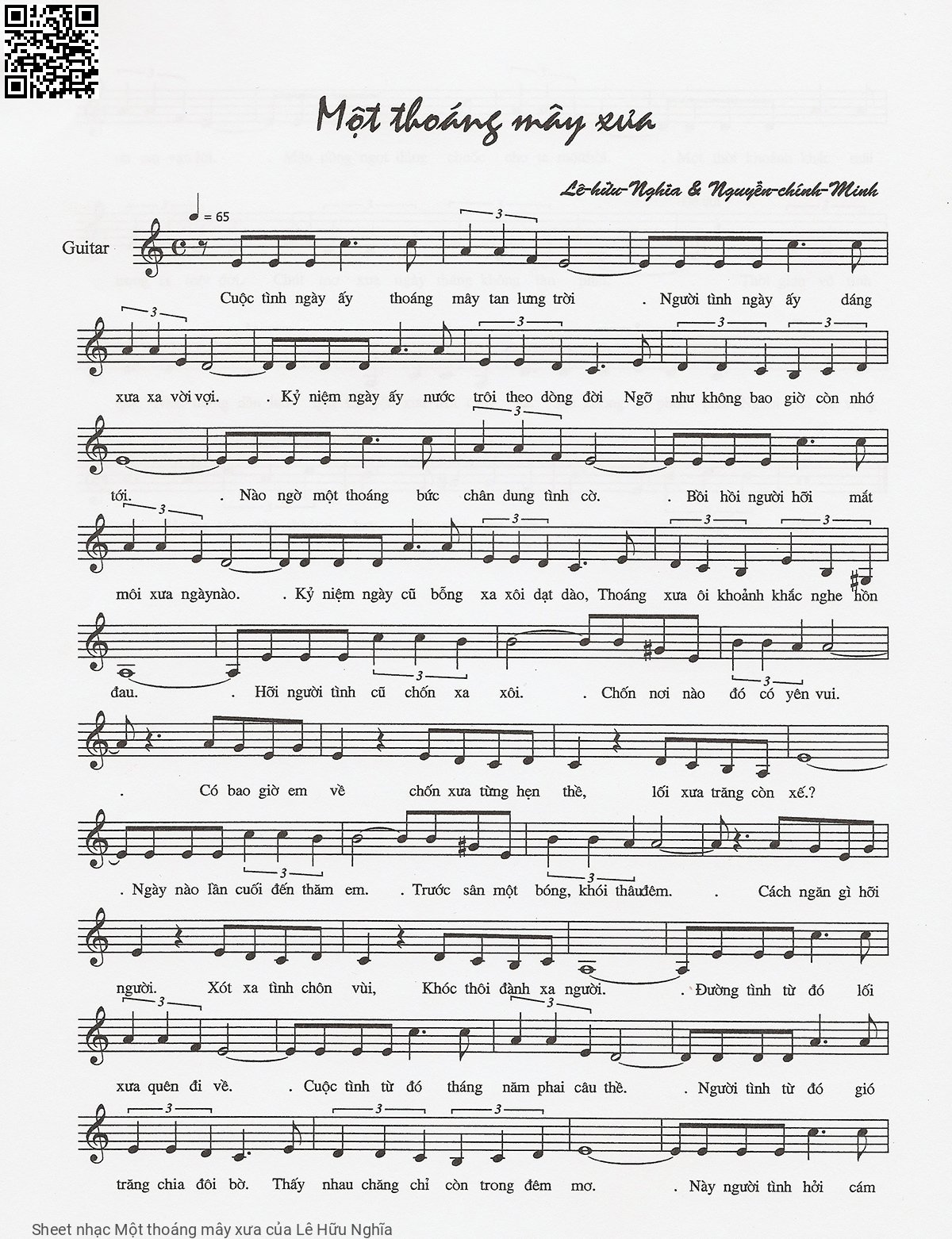 Lê Hữu Nghĩa Cuộc tình ngày ấy thoáng mây tan lưng trời [PDF] [Sheet] [Lời H.A] [Mp4/Midi]