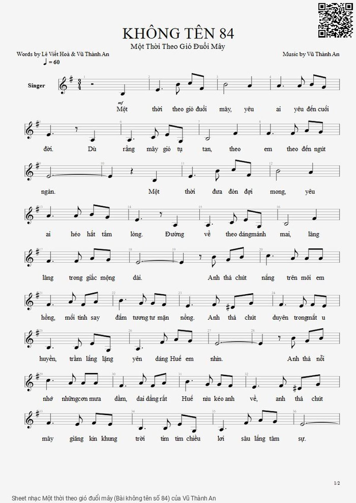 Các sheet PDF tương tự Một thời theo gió đuổi mây (Bài không tên số 84):