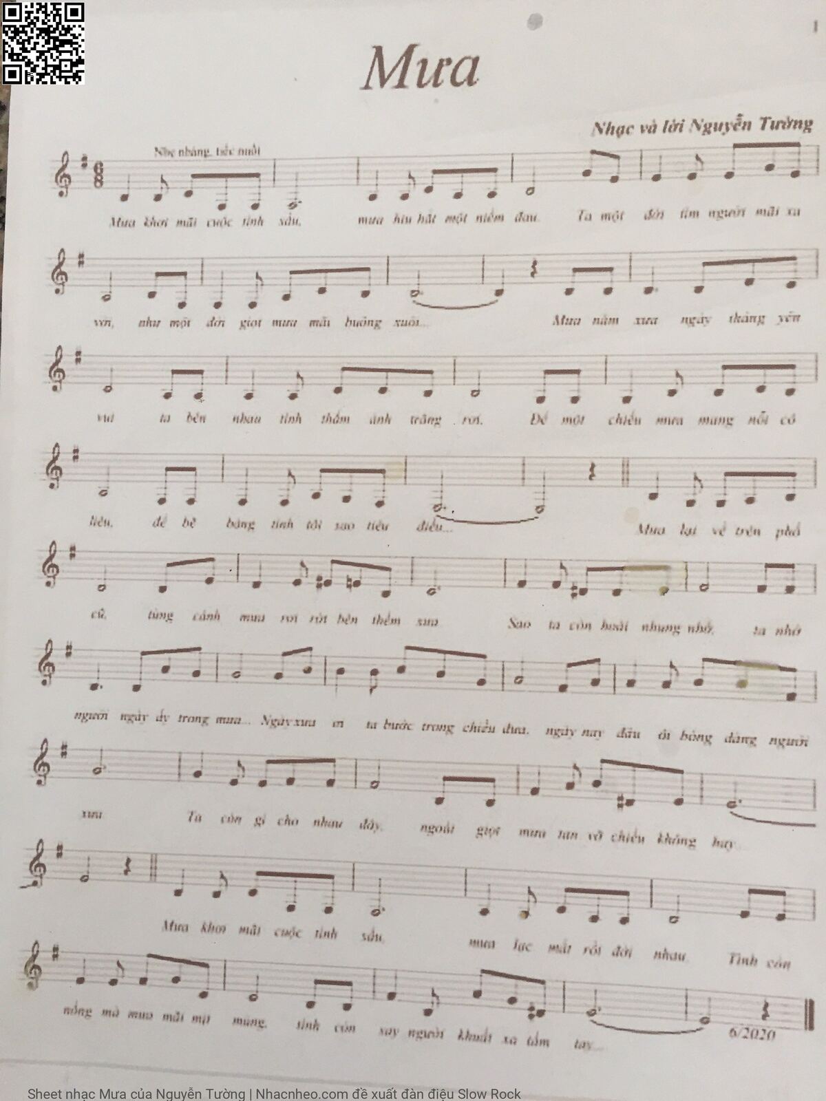 Nguyễn Tường Mưa khơi mãi cuộc tình sầu Mưa hiu hắt một niềm đau [PDF] [Sheet] [Lời H.A] [Mp4/Midi]
