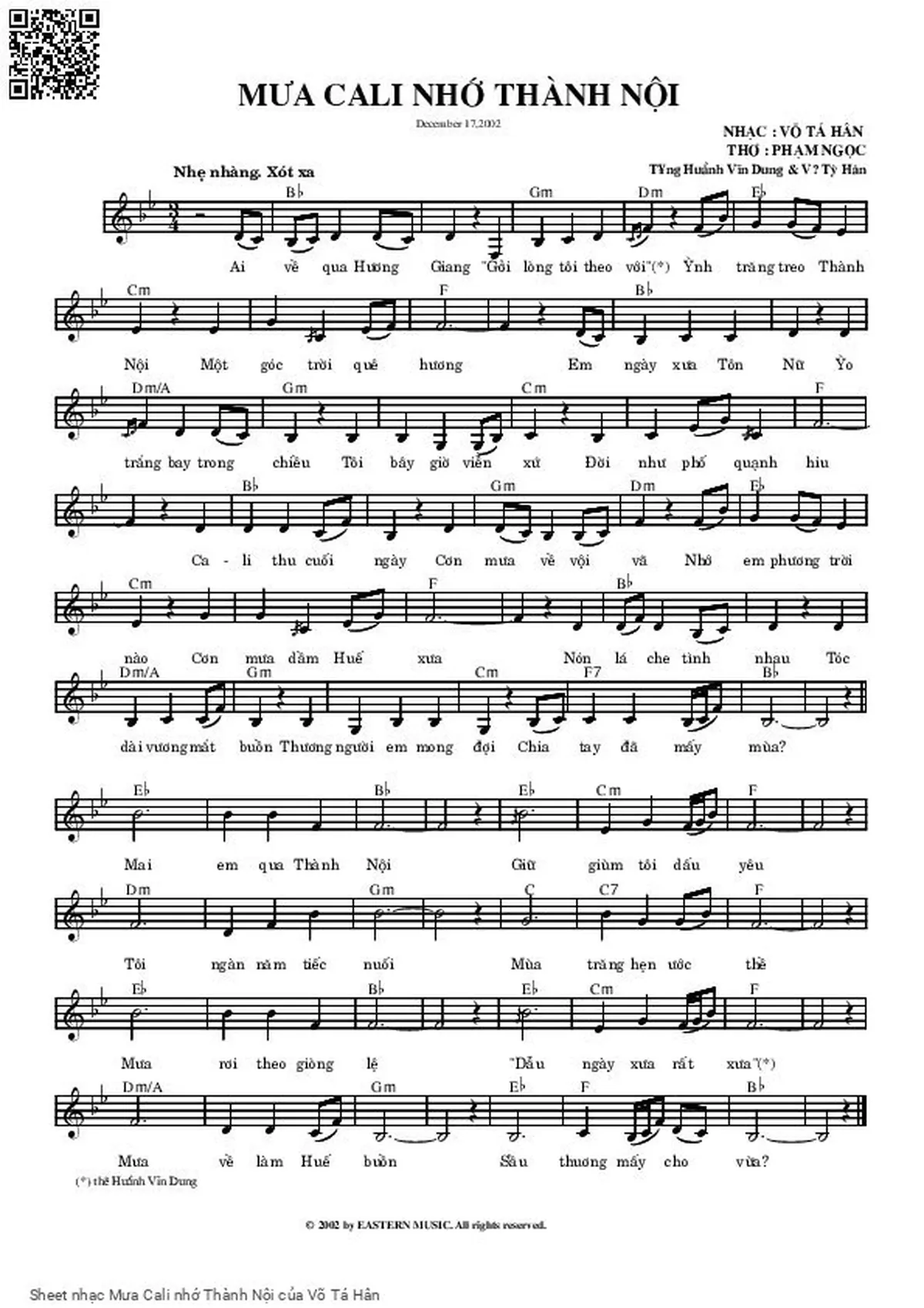 Các sheet PDF tương tự Mưa Cali nhớ Thành Nội: