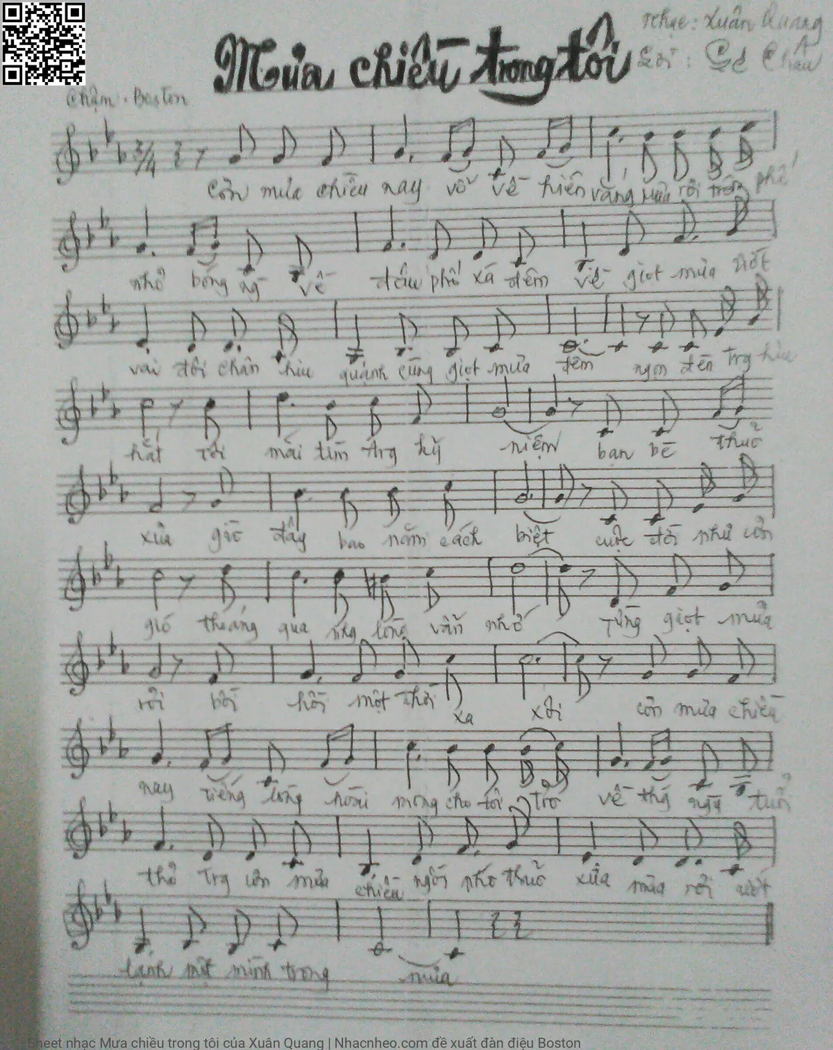 Xuân Quang Cơn mưa chiều nay vỗ về hiên vắng Mưa rơi trên phố nhỏ bóng người về đâu [PDF] [Sheet] [Lời H.A] [Mp4/Midi]