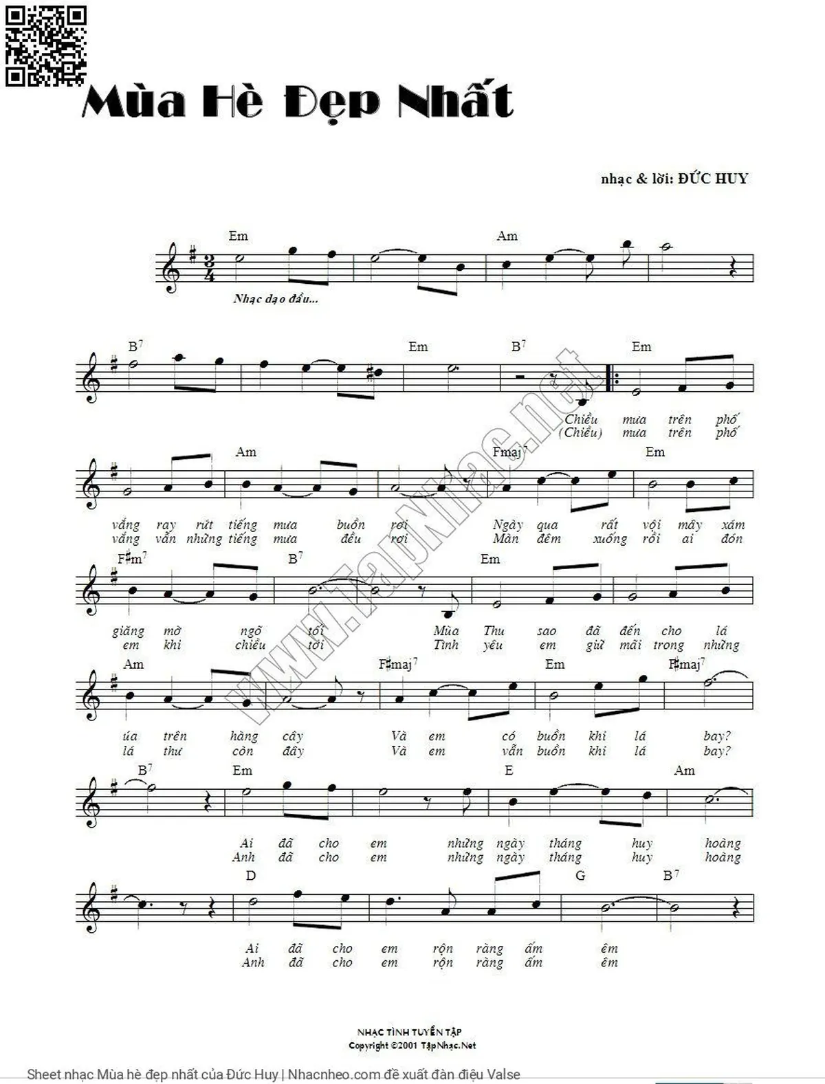 Chọn nút dấu + để tăng tông lên nửa cung, nút dấu - để giảm tông xuống nửa cung. Rê chuột vào hợp âm để xem các thế bấm hợp âm của bài hát Mùa hè đẹp nhất.