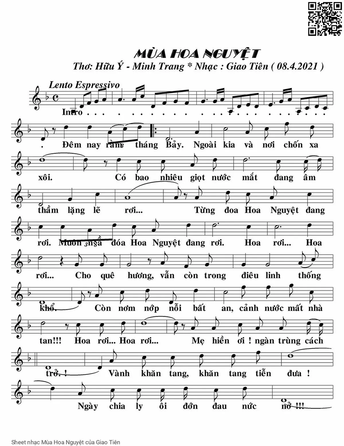 Giao Tiên Đêm nay rằm tháng Bảy Ngoài kia và nơi chốn xa xôi [PDF] [Sheet] [Lời H.A] [Mp4/Midi]