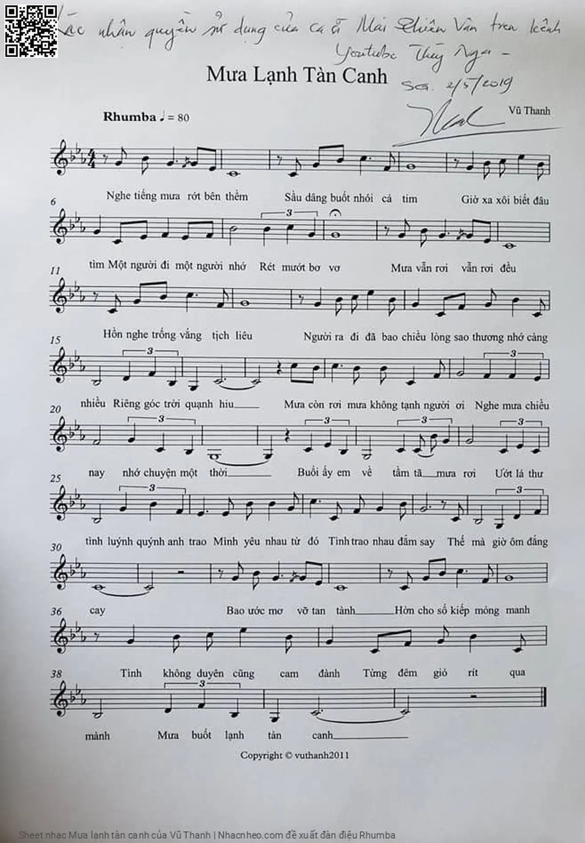 Vũ Thanh Nghe tiếng mưa rớt bên thềm Sầu dâng buốt nhói cả tim [PDF] [Sheet] [Lời H.A] [Mp4/Midi]