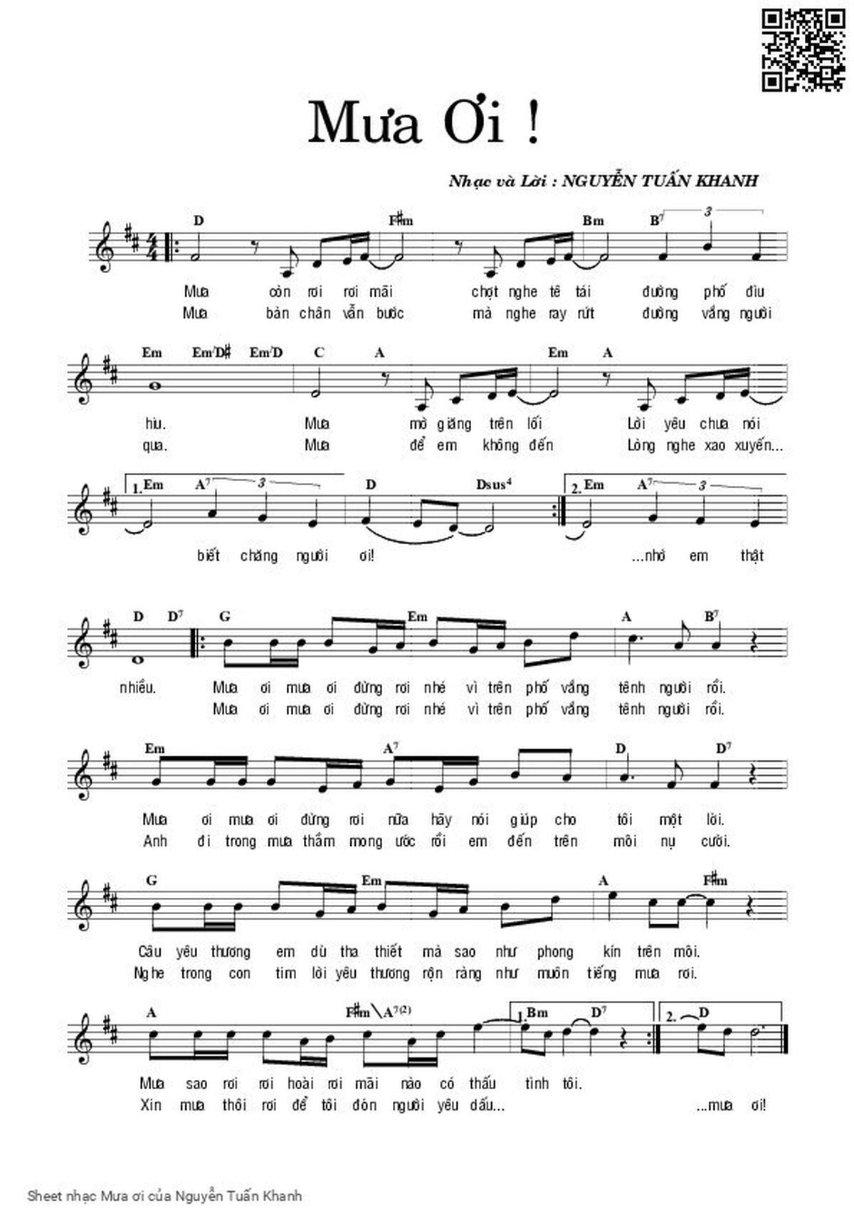 Nguyễn Tuấn Khanh Mưa còn rơi rơi mãi Chợt nghe tê tái đường phố đìu hiu [PDF] [Sheet] [Lời H.A] [Mp4/Midi]