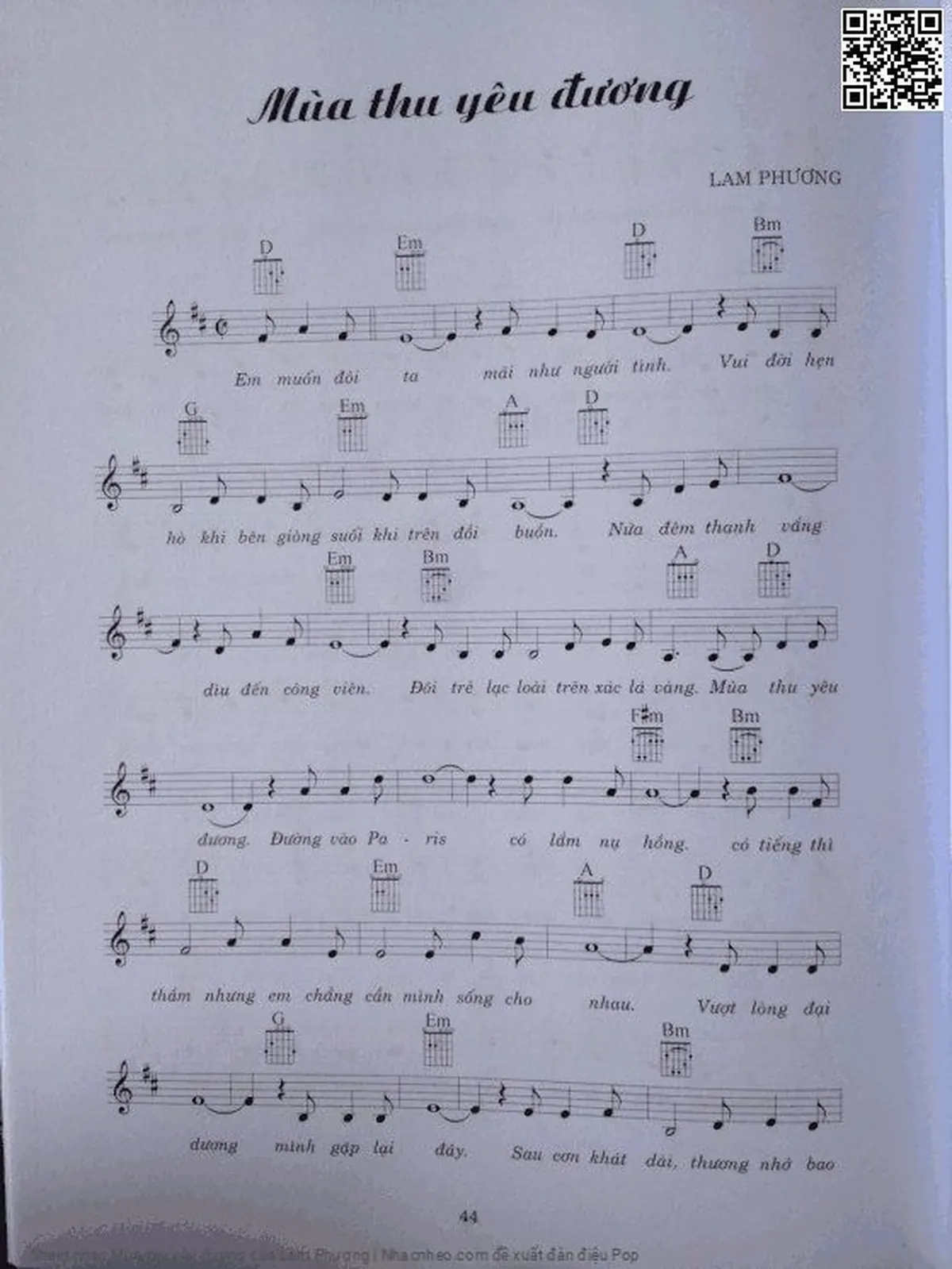 Lam Phương Em muốn đôi ta mãi như người tình Vui đời hẹn hò khi trên dòng suối khi trên đồi buồn [PDF] [Sheet] [Lời H.A] [Mp4/Midi]