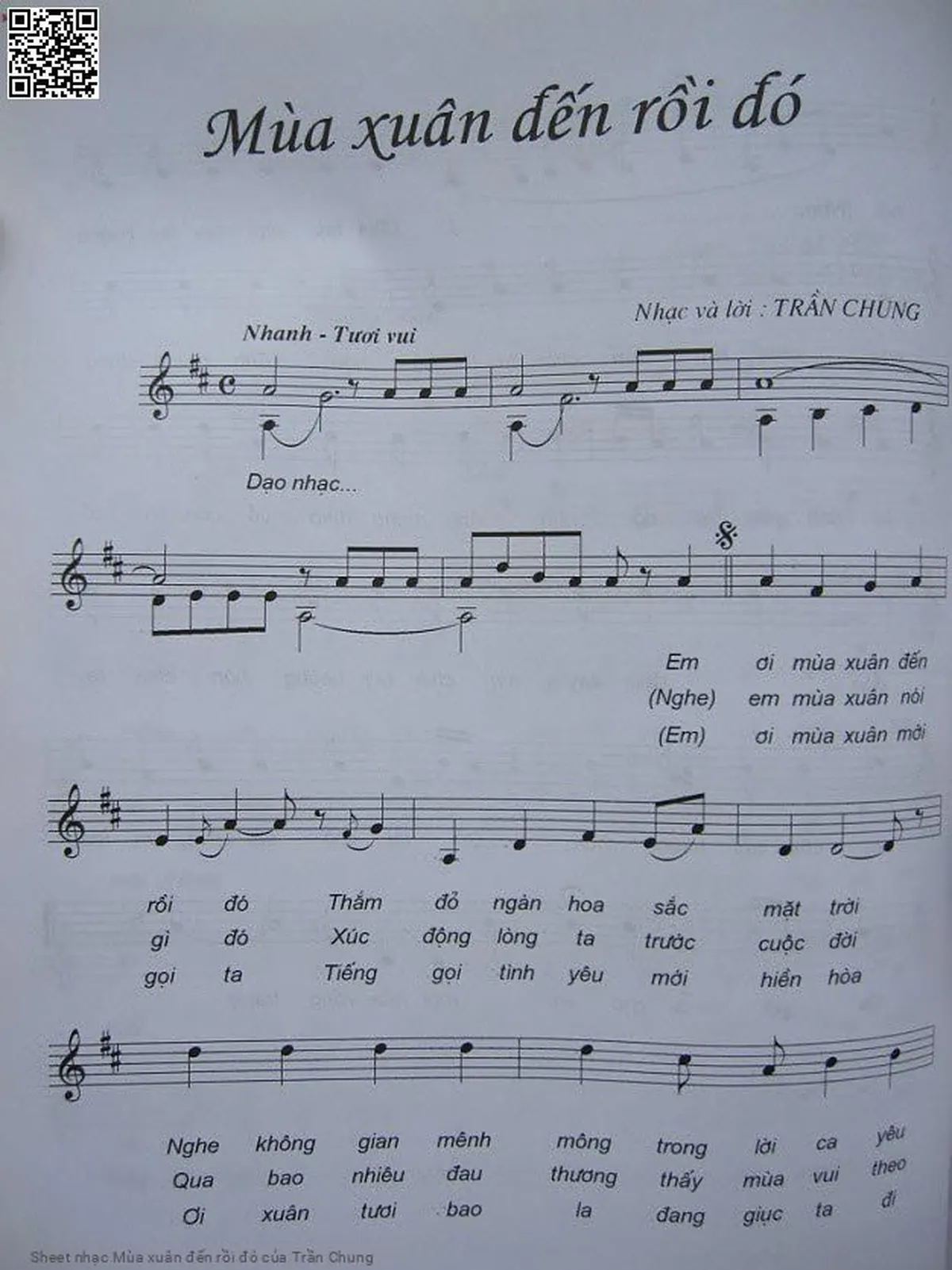 Trần Chung Em ơi mùa xuân đến rồi đó thắm đỏ ngàn hoa sắc mặt trời [PDF] [Sheet] [Lời H.A] [Mp4/Midi]