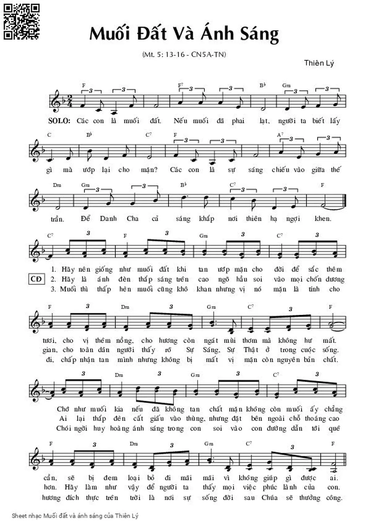 Thiên Lý Các con là muối đất Nếu muối đã phai lạt [PDF] [Sheet] [Lời H.A] [Mp4/Midi]