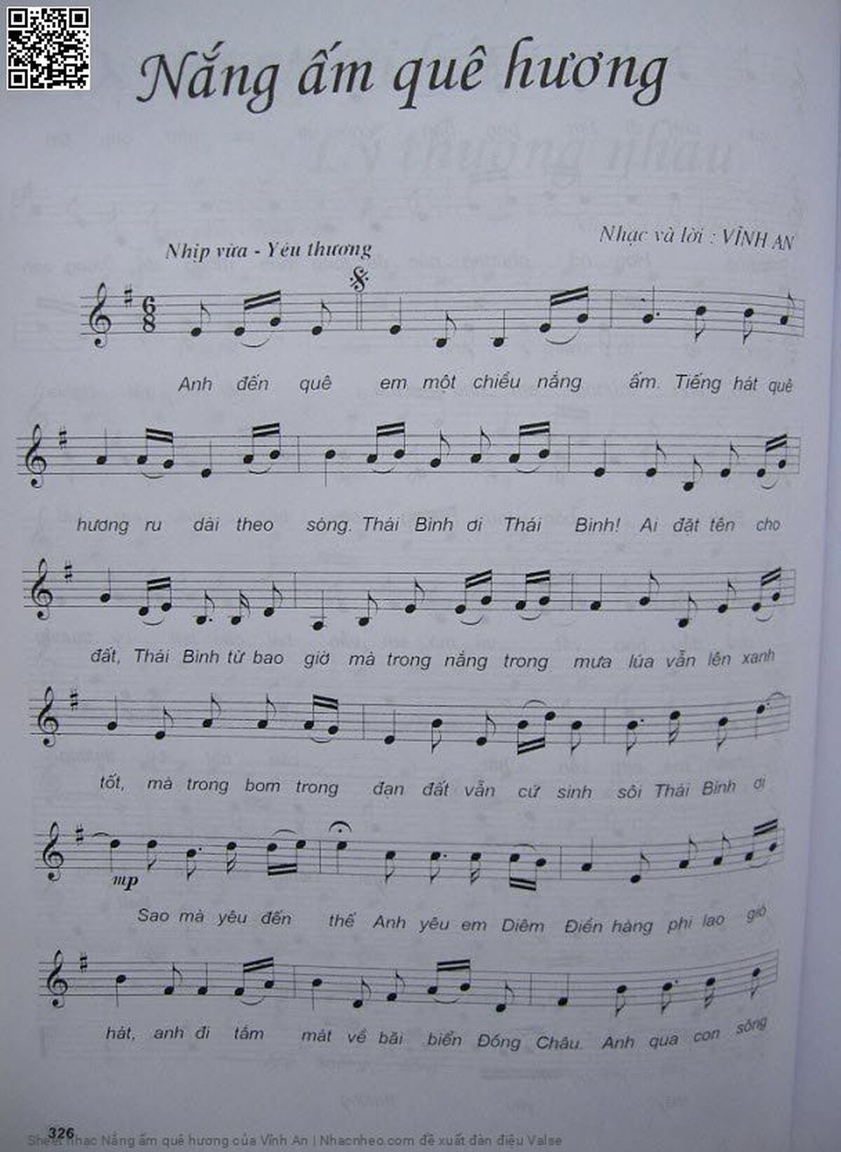 Vĩnh An Anh đến quê em một chiều nắng ấm Khúc hát quê hương ru dài theo sóng [PDF] [Sheet] [Lời H.A] [Mp4/Midi]