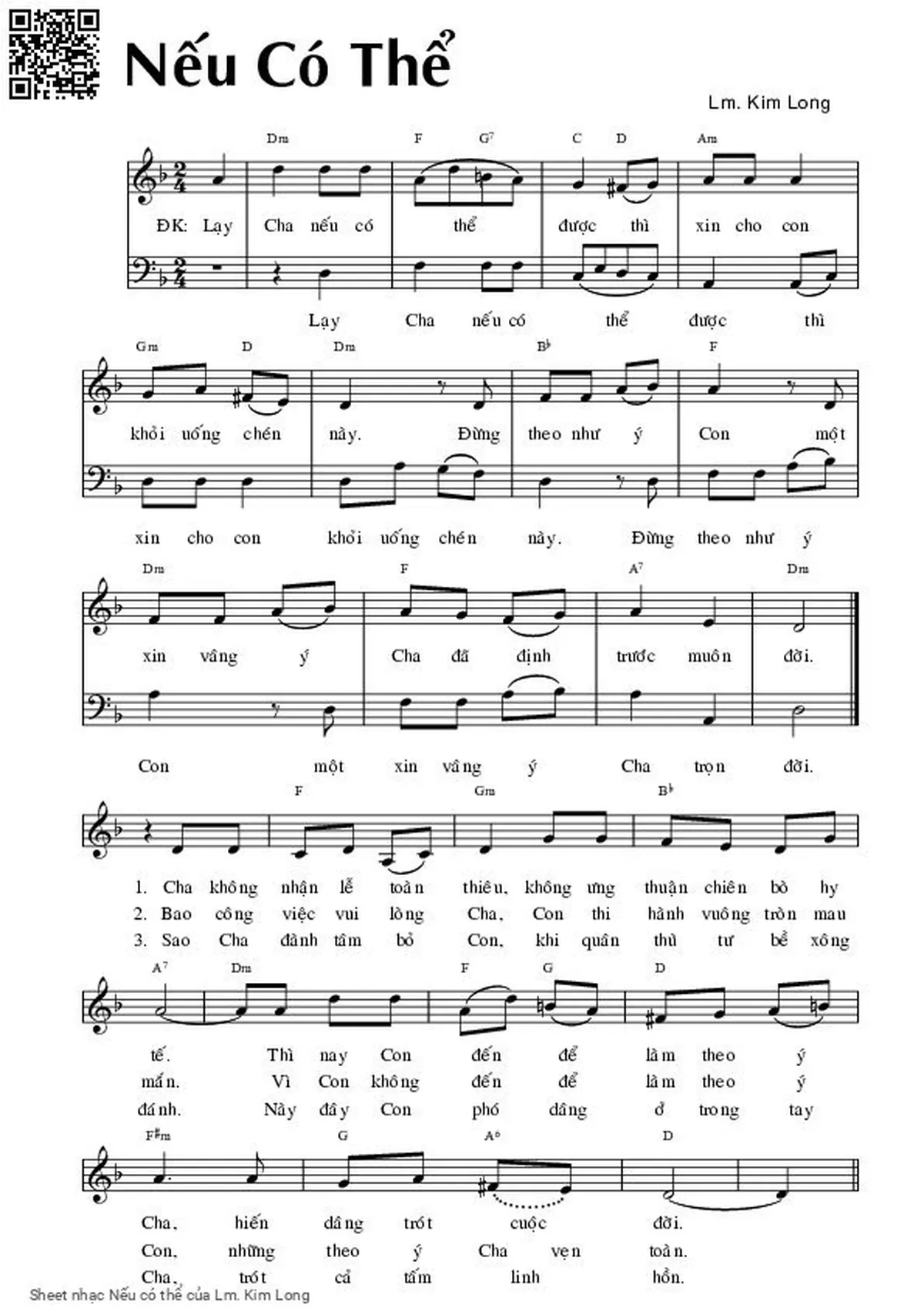 Lm. Kim Long Lạy Cha nếu có thể được thì xin cho Con khỏi uống chén này [PDF] [Sheet] [Lời H.A] [Mp4/Midi]
