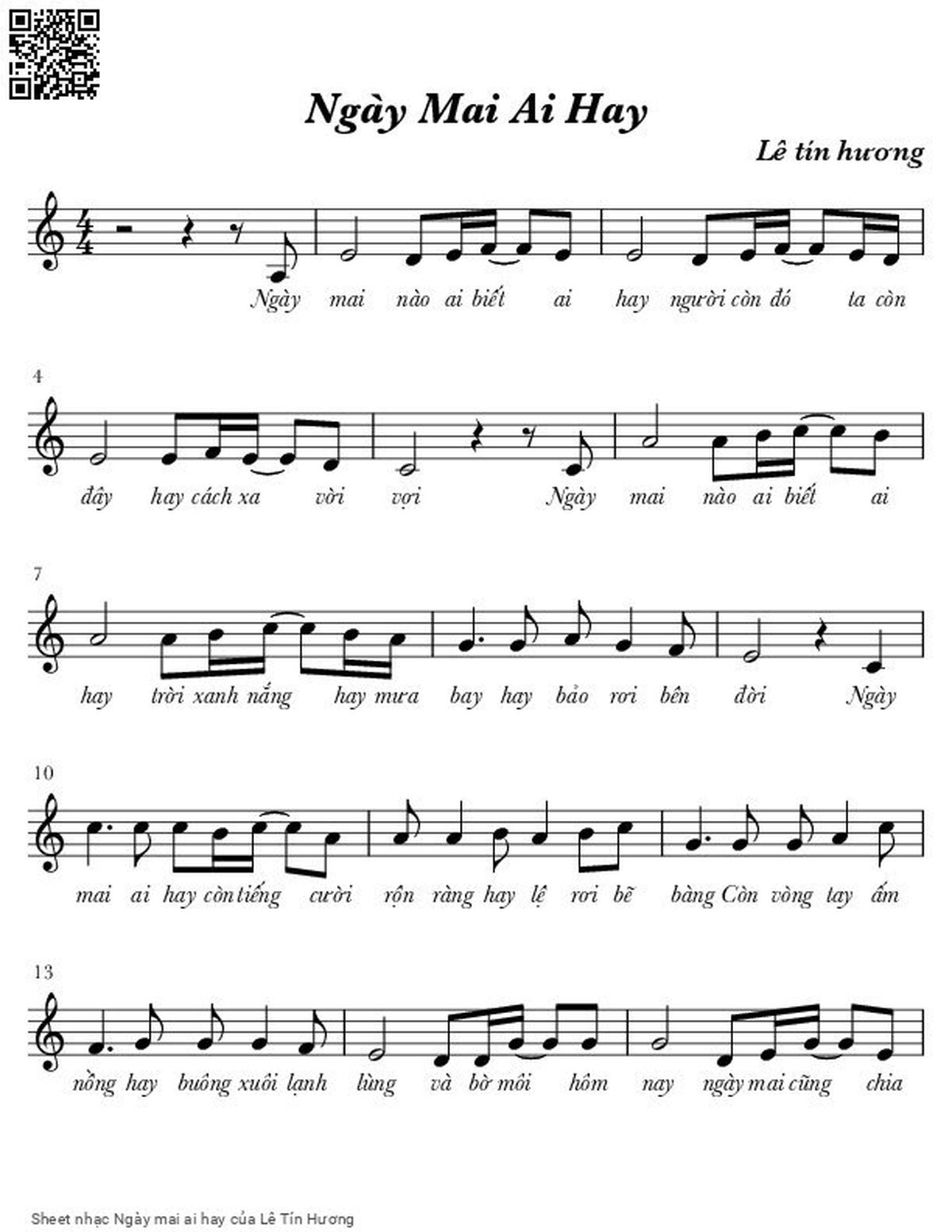 Lê Tín Hương Ngày mai nào ai biết ai hay Người còn đó ta còn đây [PDF] [Sheet] [Lời H.A] [Mp4/Midi]