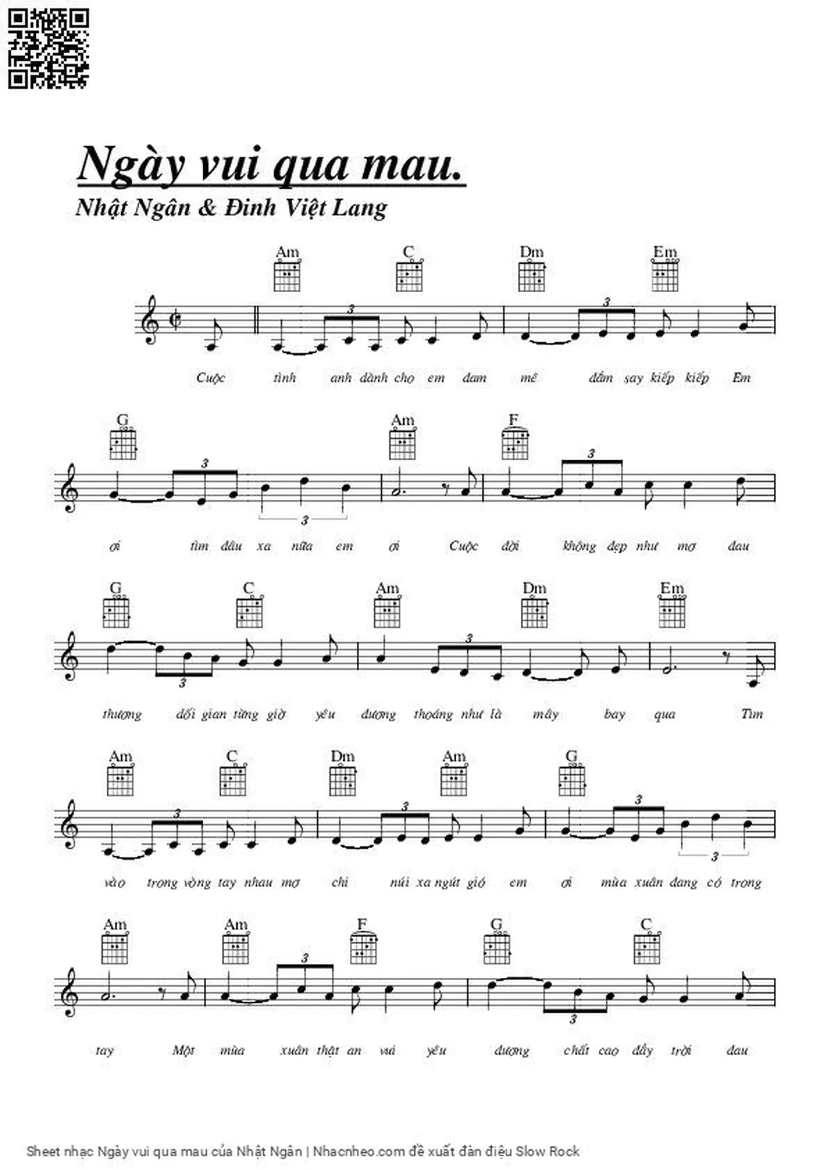 Phần nghe hát Ngày vui qua mau (Nhật Ngân) được nhúng từ Youtube, Musescore hoặc link ngoài và chịu sự kiểm soát bản quyền của bên thứ ba đó, vì vậy có thể bị xóa hoặc chèn quảng cáo bất kỳ lúc nào. Nếu bạn không nghe - xem được ca sĩ hát tức là đã bị Youtube hoặc Musescore kiểm soát.