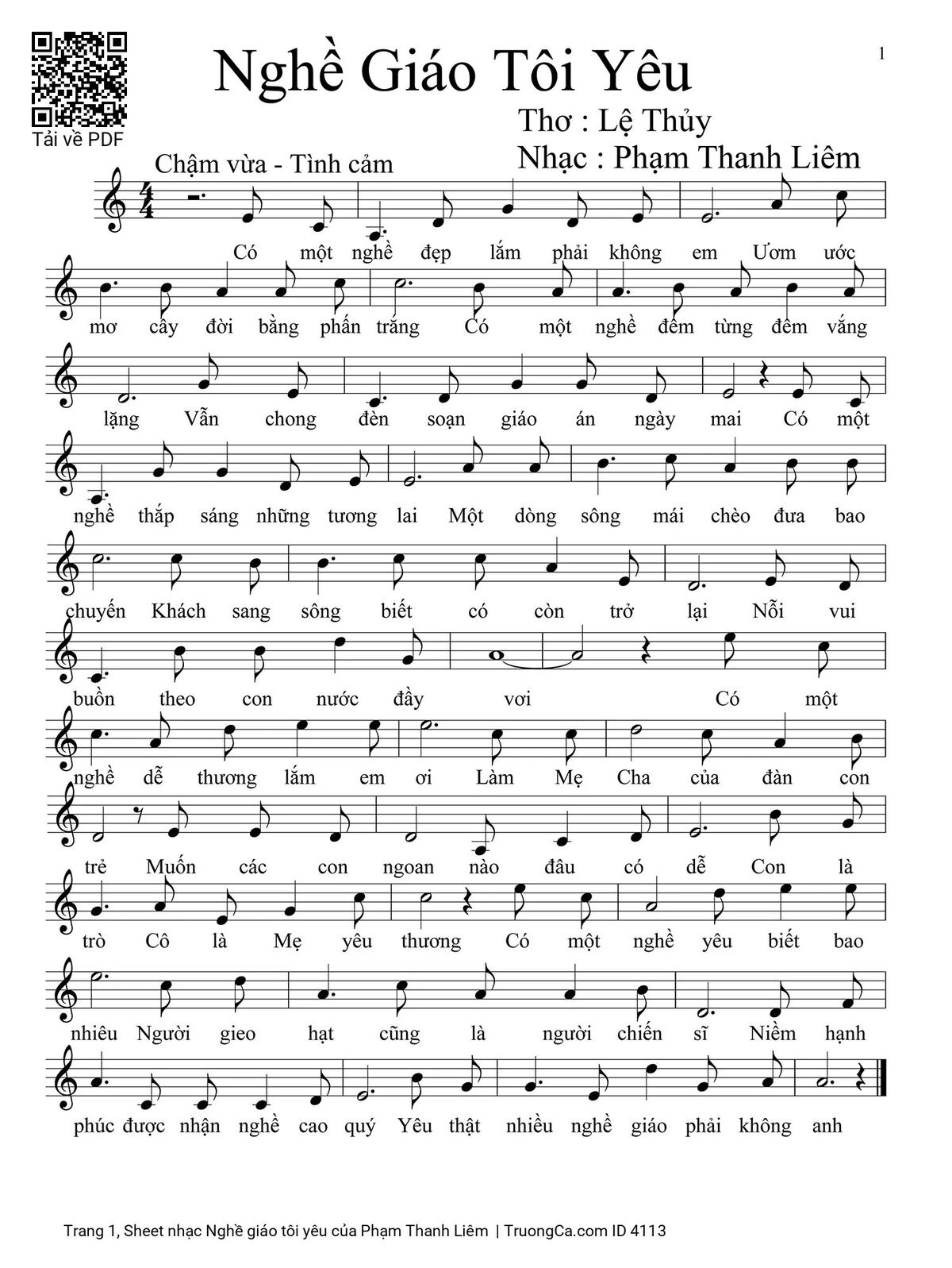 Phạm Thanh Liêm Có một nghề đẹp lắm phải không em Ươm ước mơ cây đời bằng phấn trắng [PDF] [Sheet] [Lời H.A] [Mp4/Midi]