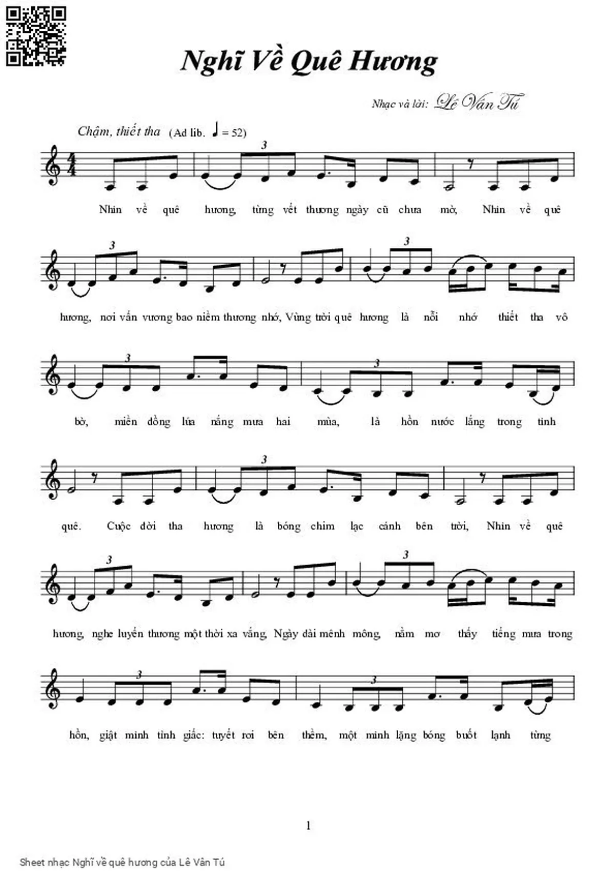 Lê Vân Tú Nhìn về quê hương từng vết thương ngày cũ chưa mờ [PDF] [Sheet] [Lời H.A] [Mp4/Midi]