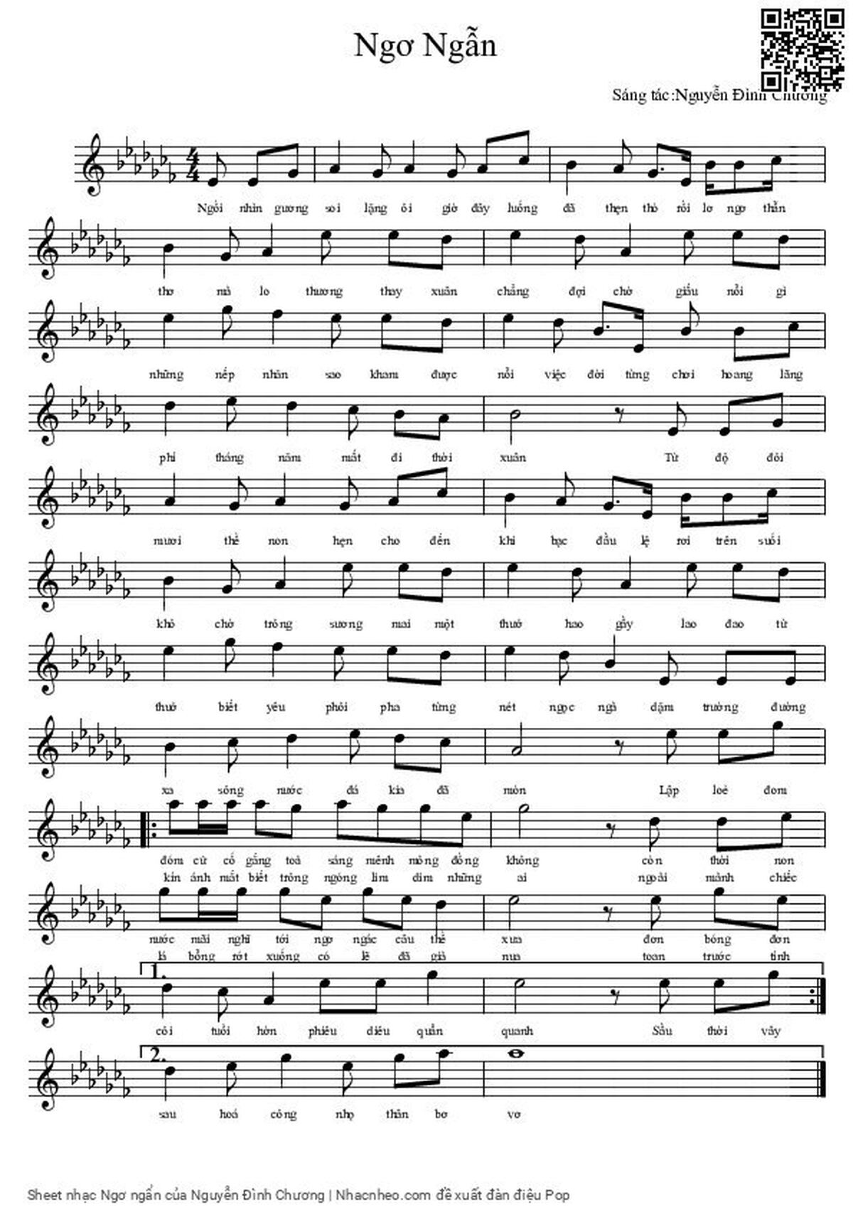 Chọn nút dấu + để tăng tông lên nửa cung, nút dấu - để giảm tông xuống nửa cung. Rê chuột vào hợp âm để xem các thế bấm hợp âm của bài hát Ngơ ngẩn.