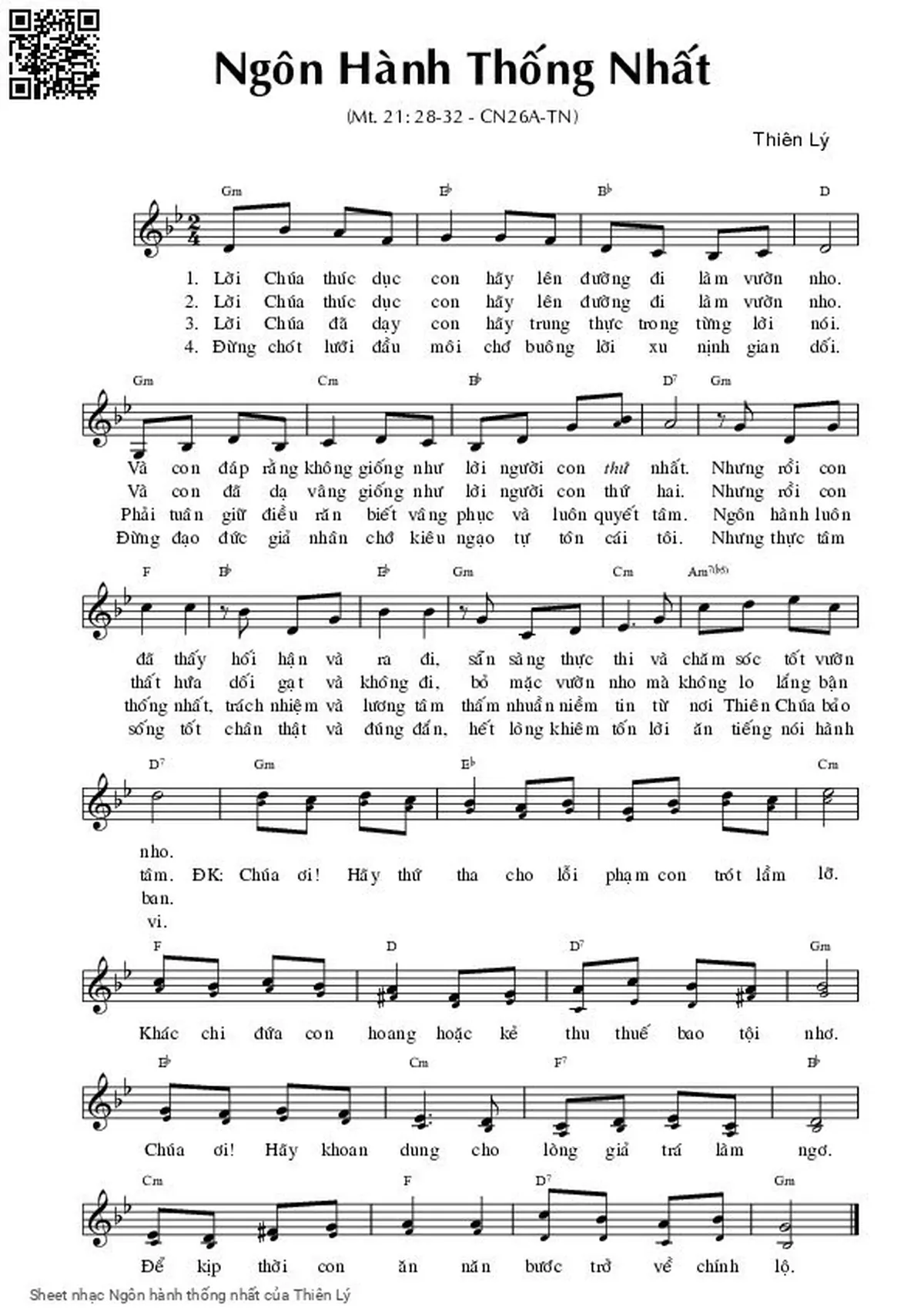 Thiên Lý Lời Chúa thúc giục con hãy lên đường đi làm vườn nho [PDF] [Sheet] [Lời H.A] [Mp4/Midi]