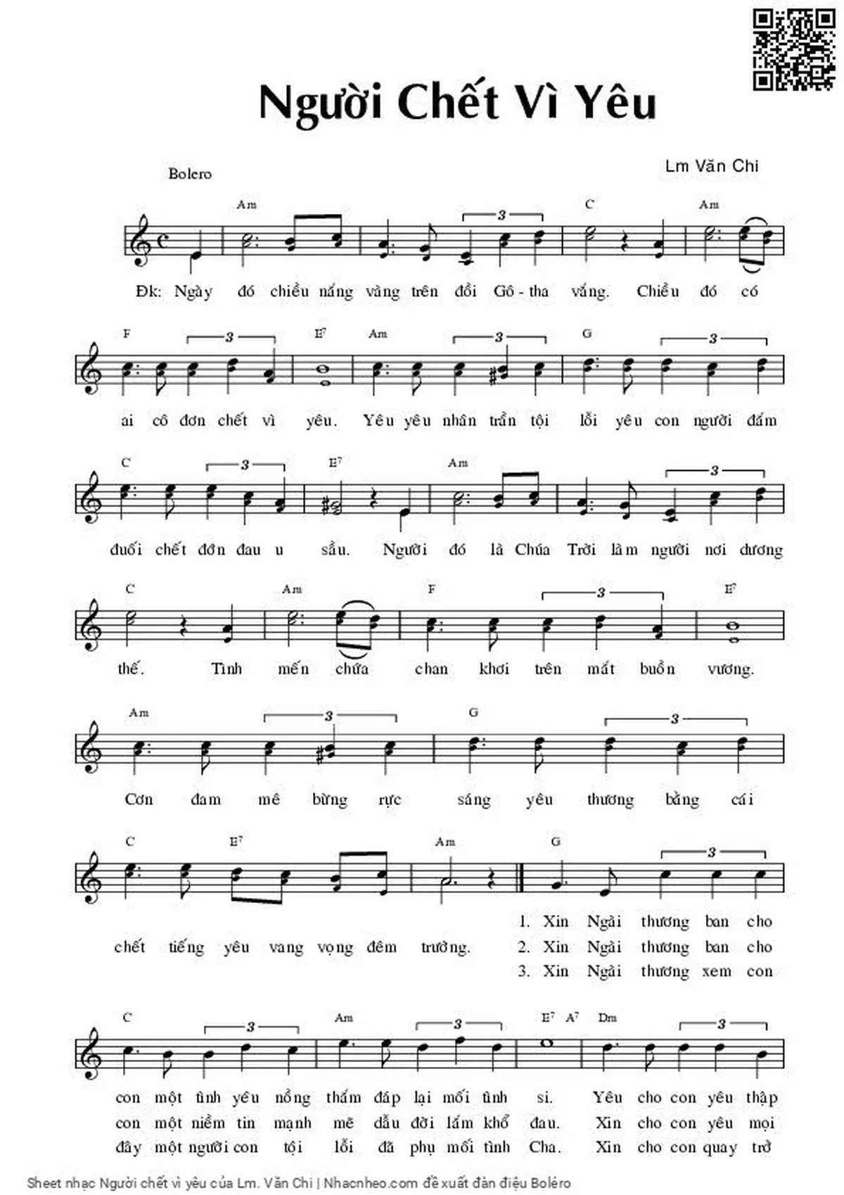 Phần nghe hát Người chết vì yêu (Lm. Văn Chi) được nhúng từ Youtube, Musescore hoặc link ngoài và chịu sự kiểm soát bản quyền của bên thứ ba đó, vì vậy có thể bị xóa hoặc chèn quảng cáo bất kỳ lúc nào. Nếu bạn không nghe - xem được ca sĩ hát tức là đã bị Youtube hoặc Musescore kiểm soát.