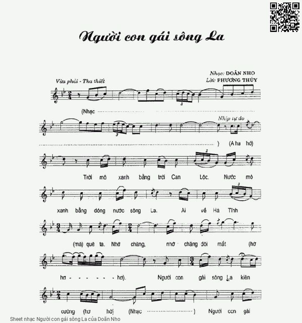 Phần nghe hát Người con gái sông La (Doãn Nho) được nhúng từ Youtube, Musescore hoặc link ngoài và chịu sự kiểm soát bản quyền của bên thứ ba đó, vì vậy có thể bị xóa hoặc chèn quảng cáo bất kỳ lúc nào. Nếu bạn không nghe - xem được ca sĩ hát tức là đã bị Youtube hoặc Musescore kiểm soát.