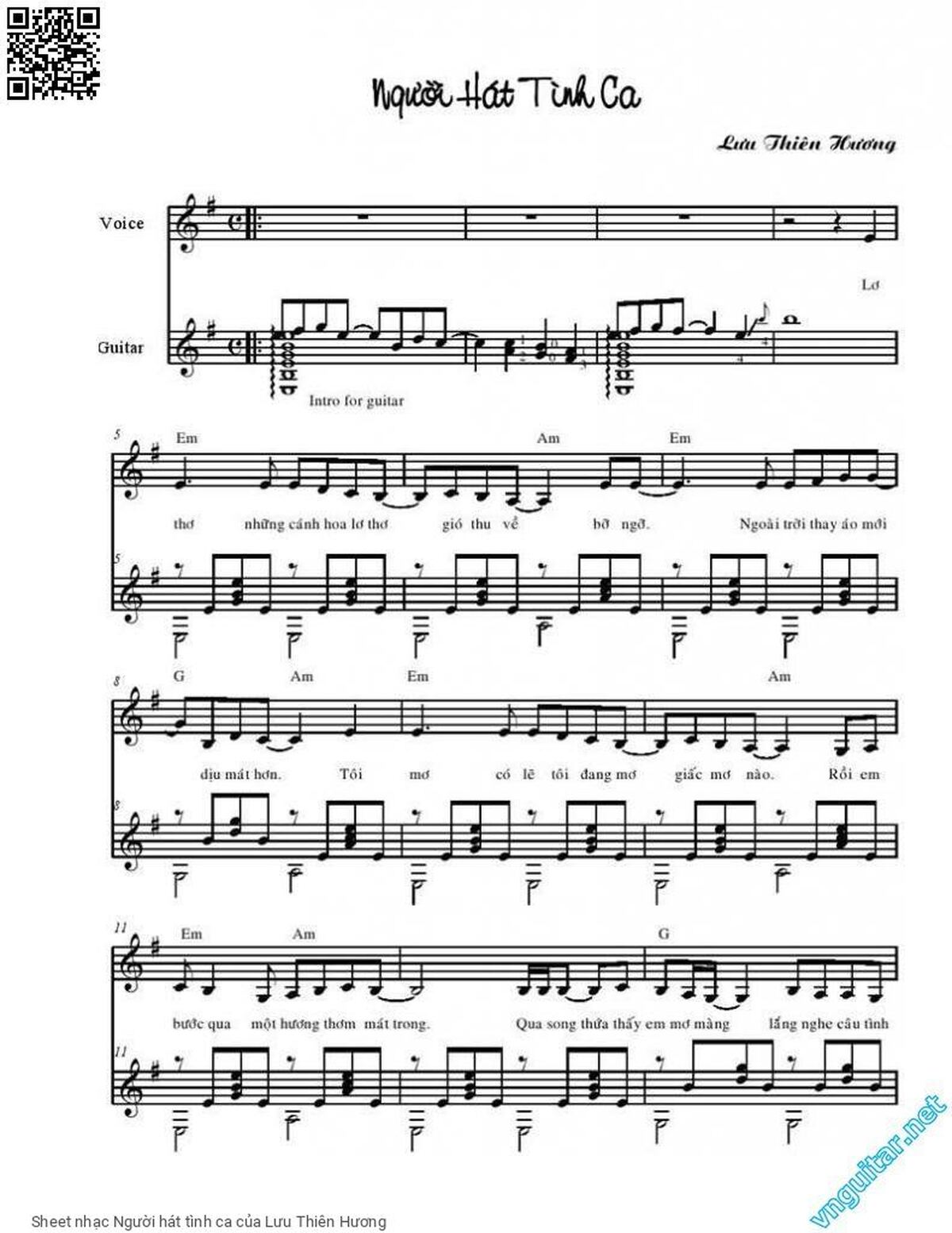 Phần nghe hát Người hát tình ca (Lưu Thiên Hương) được nhúng từ Youtube, Musescore hoặc link ngoài và chịu sự kiểm soát bản quyền của bên thứ ba đó, vì vậy có thể bị xóa hoặc chèn quảng cáo bất kỳ lúc nào. Nếu bạn không nghe - xem được ca sĩ hát tức là đã bị Youtube hoặc Musescore kiểm soát.