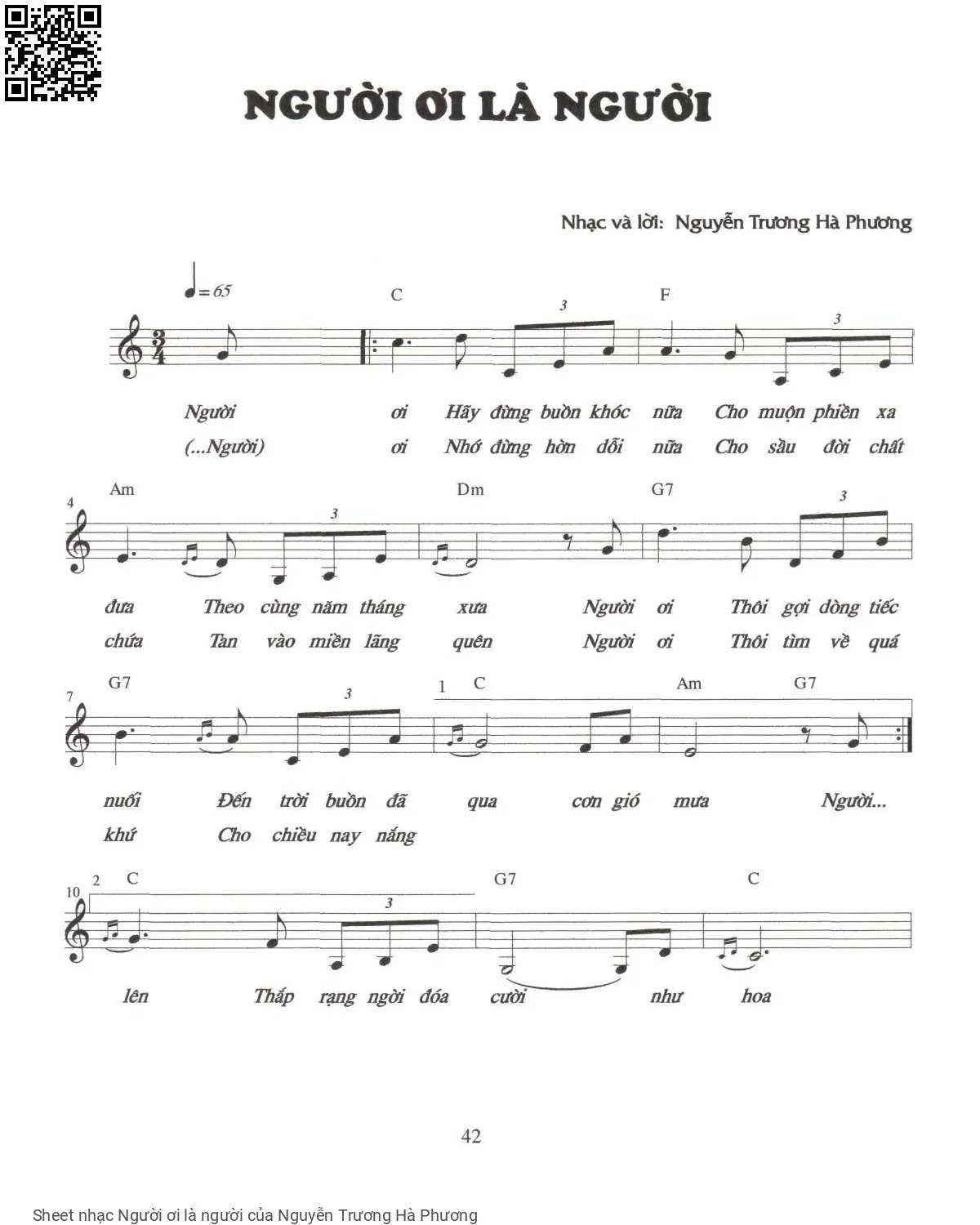 Chọn nút dấu + để tăng tông lên nửa cung, nút dấu - để giảm tông xuống nửa cung. Rê chuột vào hợp âm để xem các thế bấm hợp âm của bài hát Người ơi là người.