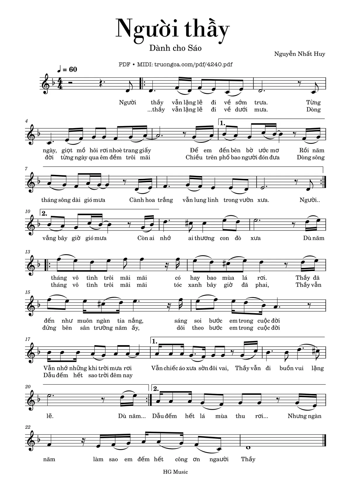 Nguyễn Nhất Huy Người thầy vẫn lặng lẽ đi về sớm trưa [PDF] [Sheet] [Lời H.A] [Mp4/Midi] [Lời bình - giai thoại]