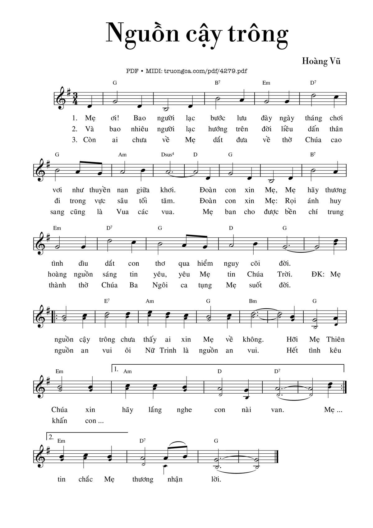 Nguồn [G] sáng tin [C] yêu, yêu Mẹ [G] tin Chúa [C] Trời.
