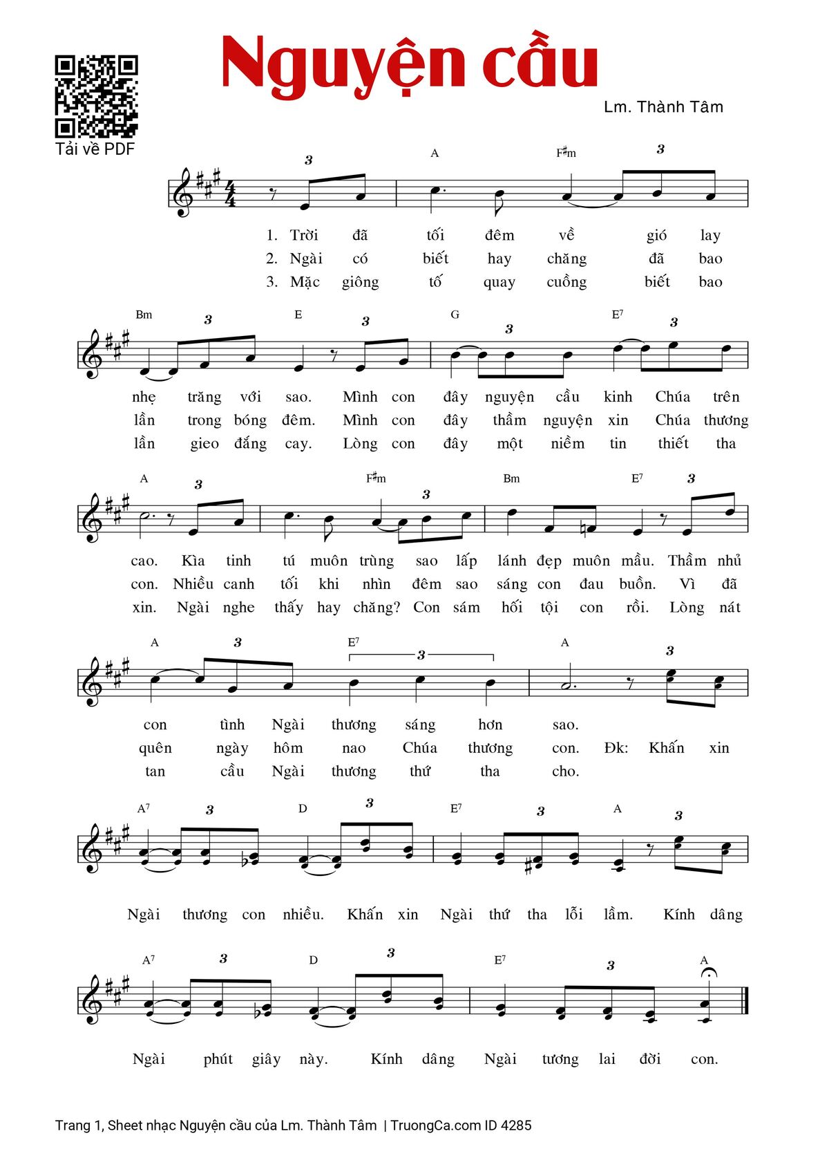 Phần nghe hát Nguyện cầu (Lm. Thành Tâm) được nhúng từ Youtube, Musescore hoặc link ngoài và chịu sự kiểm soát bản quyền của bên thứ ba đó, vì vậy có thể bị xóa hoặc chèn quảng cáo bất kỳ lúc nào. Nếu bạn không nghe - xem được ca sĩ hát tức là đã bị Youtube hoặc Musescore kiểm soát.
