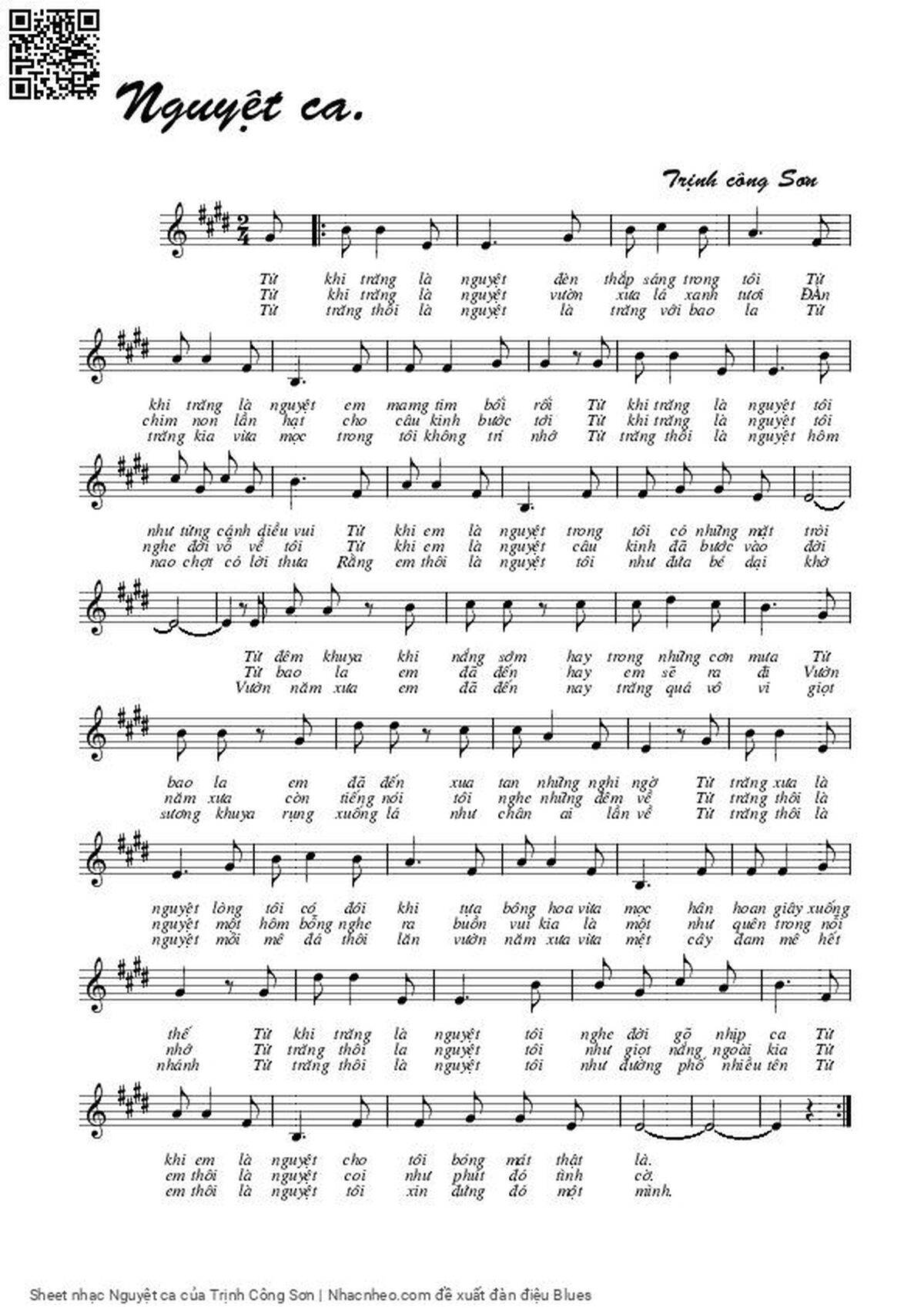 Phần nghe hát Nguyệt ca (Trịnh Công Sơn) được nhúng từ Youtube, Musescore hoặc link ngoài và chịu sự kiểm soát bản quyền của bên thứ ba đó, vì vậy có thể bị xóa hoặc chèn quảng cáo bất kỳ lúc nào. Nếu bạn không nghe - xem được ca sĩ hát tức là đã bị Youtube hoặc Musescore kiểm soát.